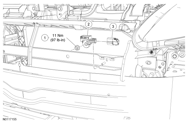 4. WARNING: Always tighten the fasteners of the restraints control module (RCM) and impact sensor (if equipped) to the specified torque. Failure to do so may result in incorrect restraint system operation, which increases the risk of personal injury or death in a crash.