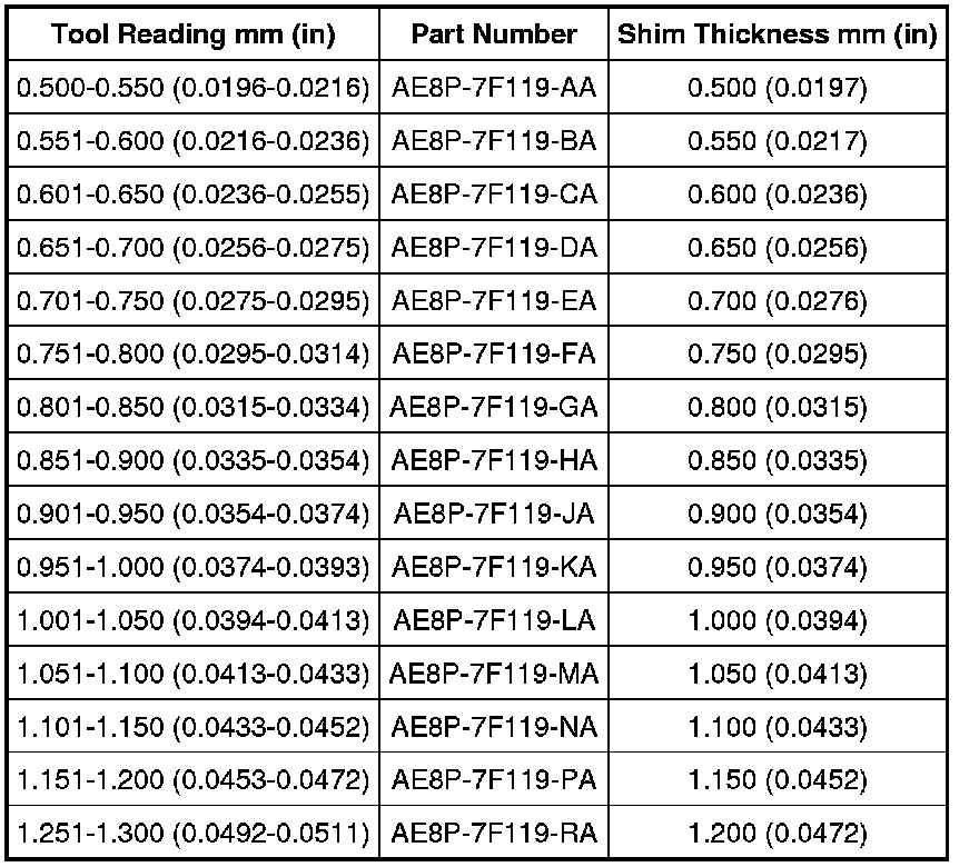 Shim Selection Chart