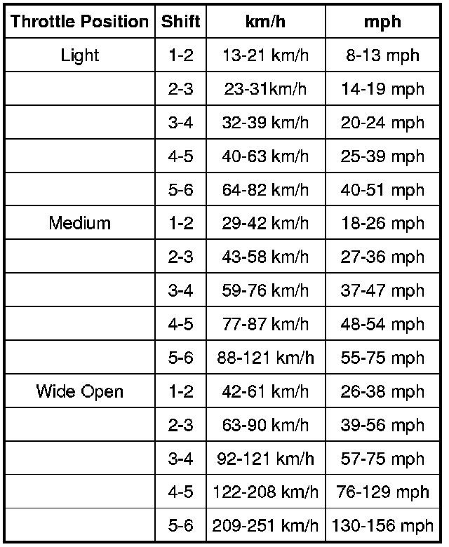 Shift Speeds Chart