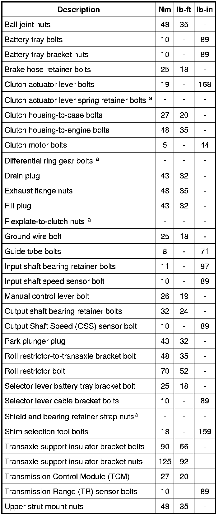 Torque Specifications
