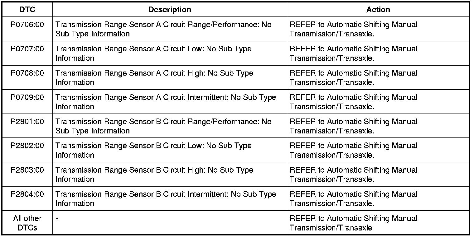 Transmission Control Module (TCM) DTC Chart