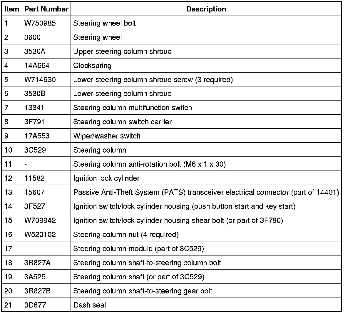 Steering Column - Exploded View
