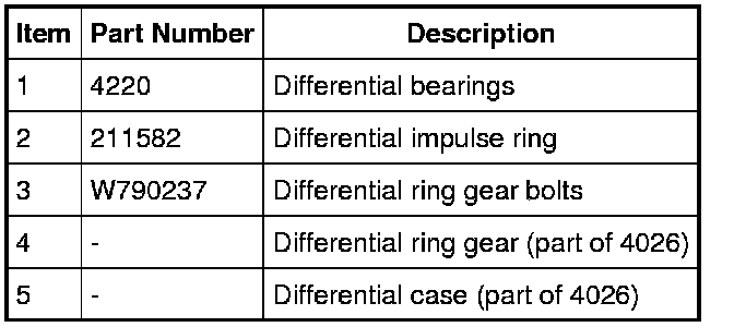 1. Inspect differential parts for damage or wear. Repair or replace as needed.