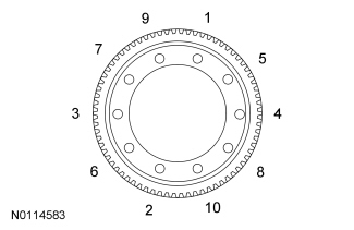 - Using the illustration, tighten to 85 Nm (63 lb-ft) in a star pattern.