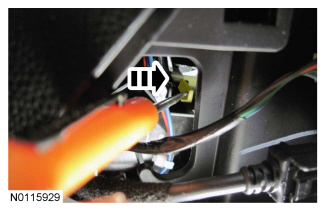 5. Using an suitable tool, depress the brake shift interlock override mechanism on the BSIA, apply the brake, depress the button on the selector lever and move the selector lever into NEUTRAL.