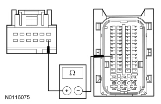 - Measure the resistance between selector lever harness C3245-7, circuit CE417 (GY/BN) and TCM C1ET02-11.
