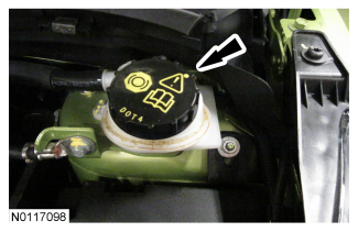 NOTICE: If brake fluid is spilled on the paint, immediately wash the affected area with cold water or damage can occur.