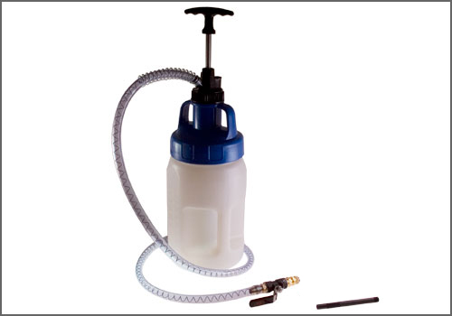 Used for filling fluids in transmission, differentials and transfer cases (not suitable for use with fuels or solvents). ATF 1001 FORD set includes pump, container, hose, shut-off valve and the following adapters: