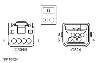 - Measure the resistance between master window control switch C504B, harness side and LH front power window motor C524, harness side using the following chart: