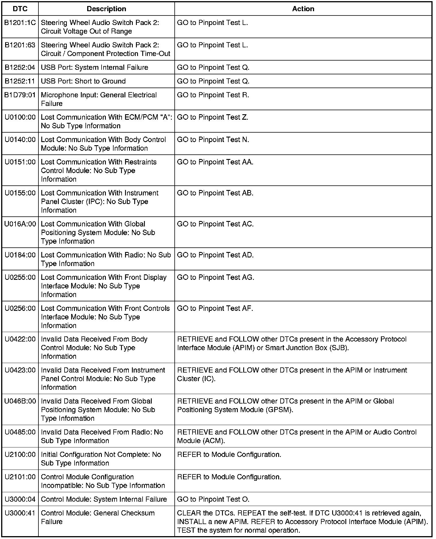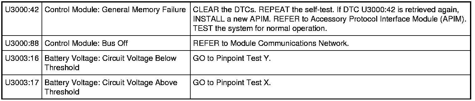 Accessory Protocol Interface Module (APIM) DTC Chart