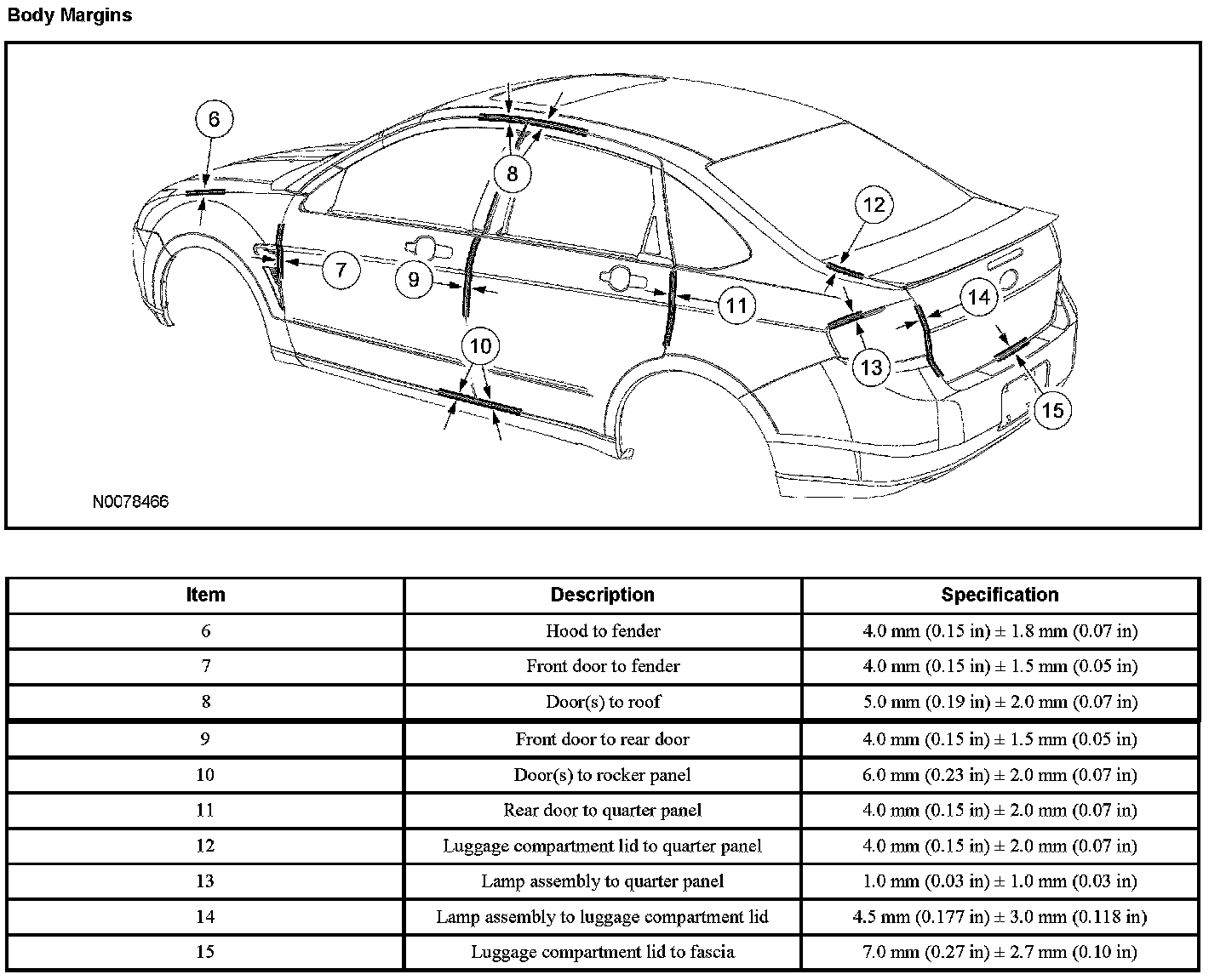 NOTE: Four-door shown. Panel margins shown in this illustration apply to all body styles.