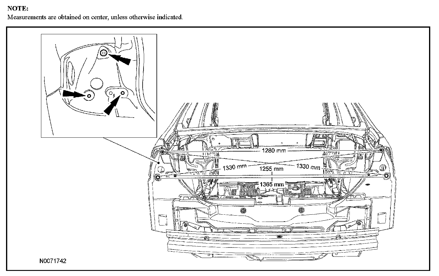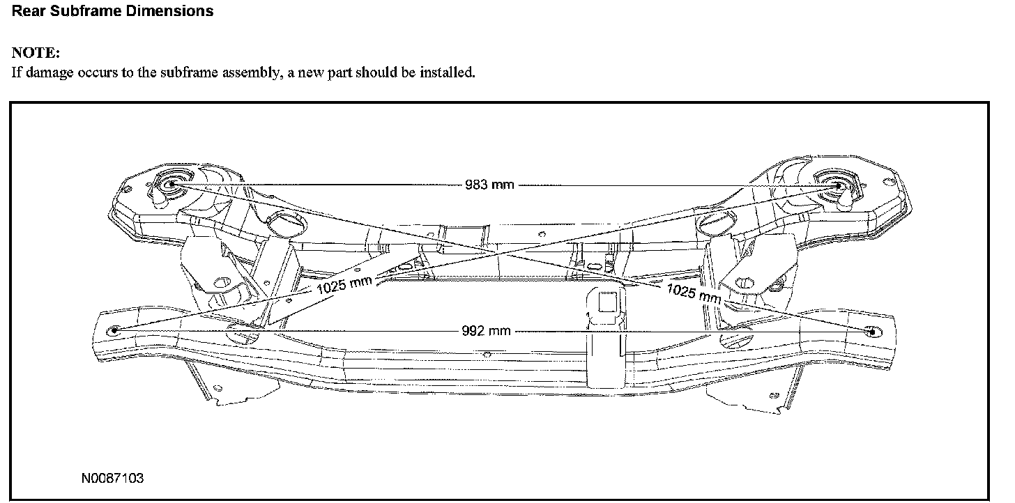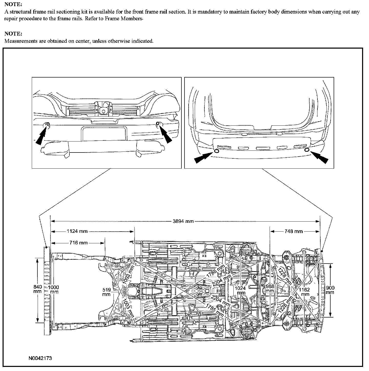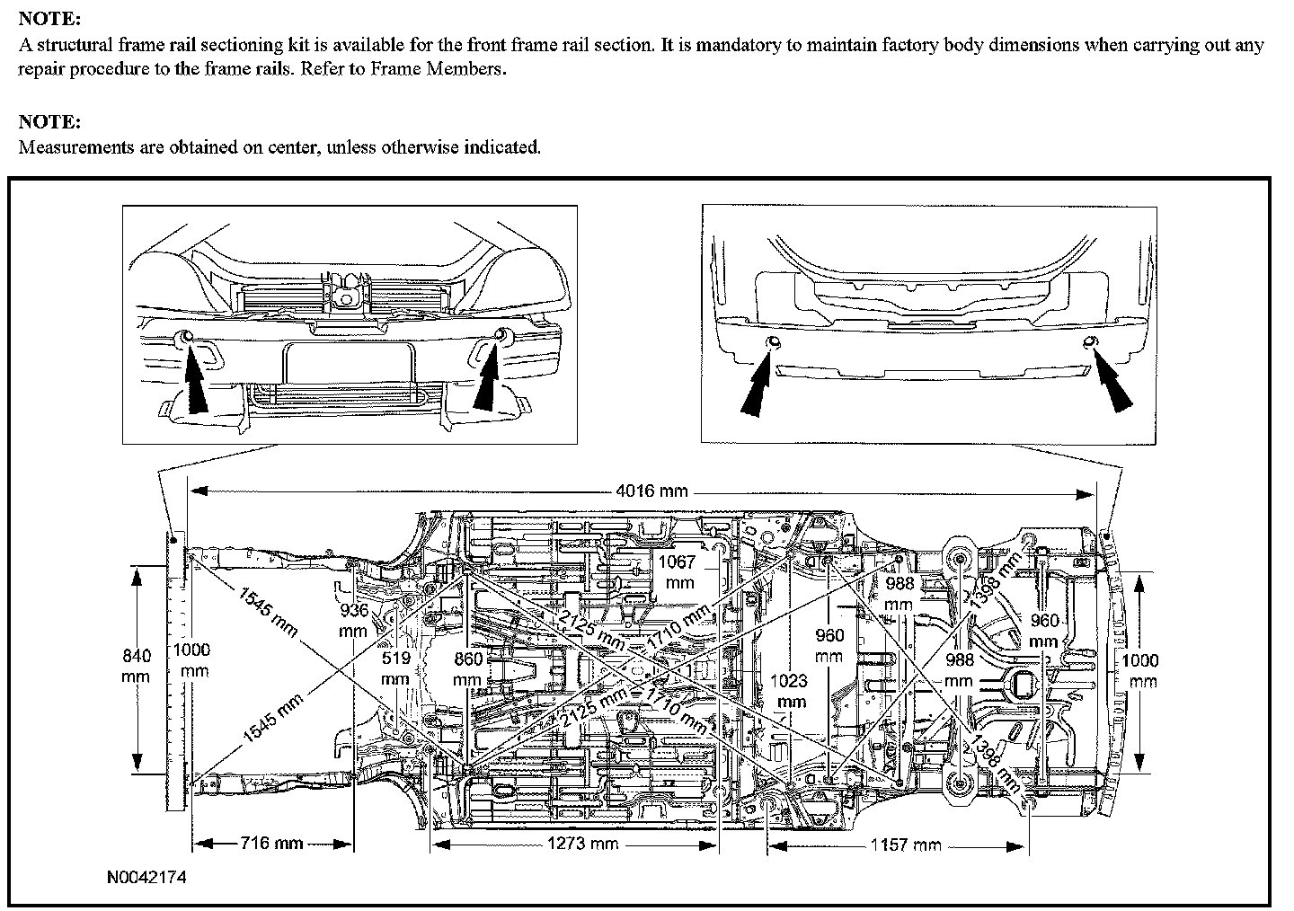 WARNING: Frame rail crush zones absorb crash energy during a collision and must be replaced if damaged. Straighten damaged frame rails to correct frame dimensions prior to frame member sectioning. Failure to follow these instructions may adversely affect frame rail performance and may result serious personal injury to vehicle occupant(s).