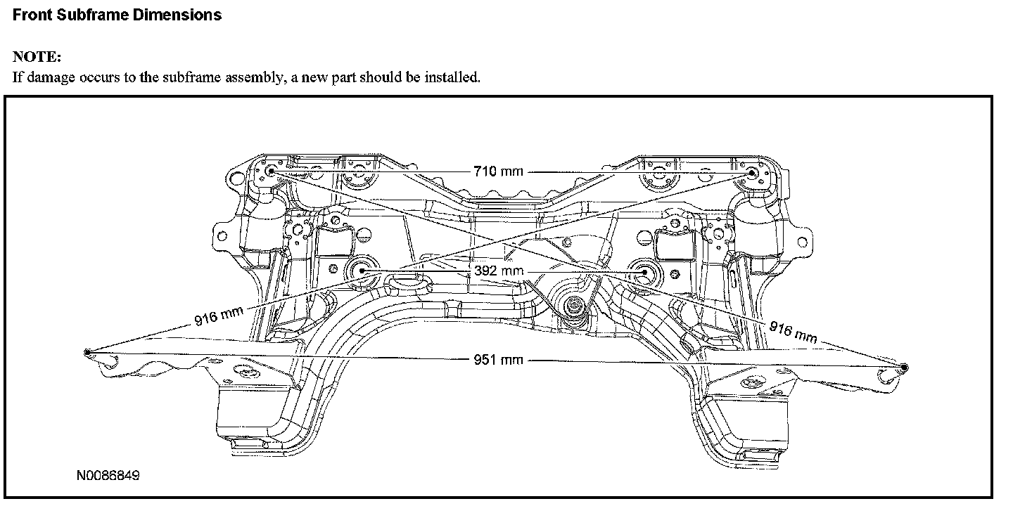 Ford Motor Company does not endorse, cannot attest to, and makes no representations regarding structural repairs (frames, rails, aprons and body panels) carried out using non-genuine Ford Motor Company parts or non-Ford-approved methods. In particular, Ford makes no representations that the vehicle will meet any crash safety or anti-corrosion performance requirement. Such parts and methods have not been tested by Ford, and may not meet Ford's requirements for safety, performance, strength, quality, durability and corrosion protection. Ford Motor Company bears no responsibility or liability of any kind if repairs are performed using alternative structural component repair procedures and/or parts.