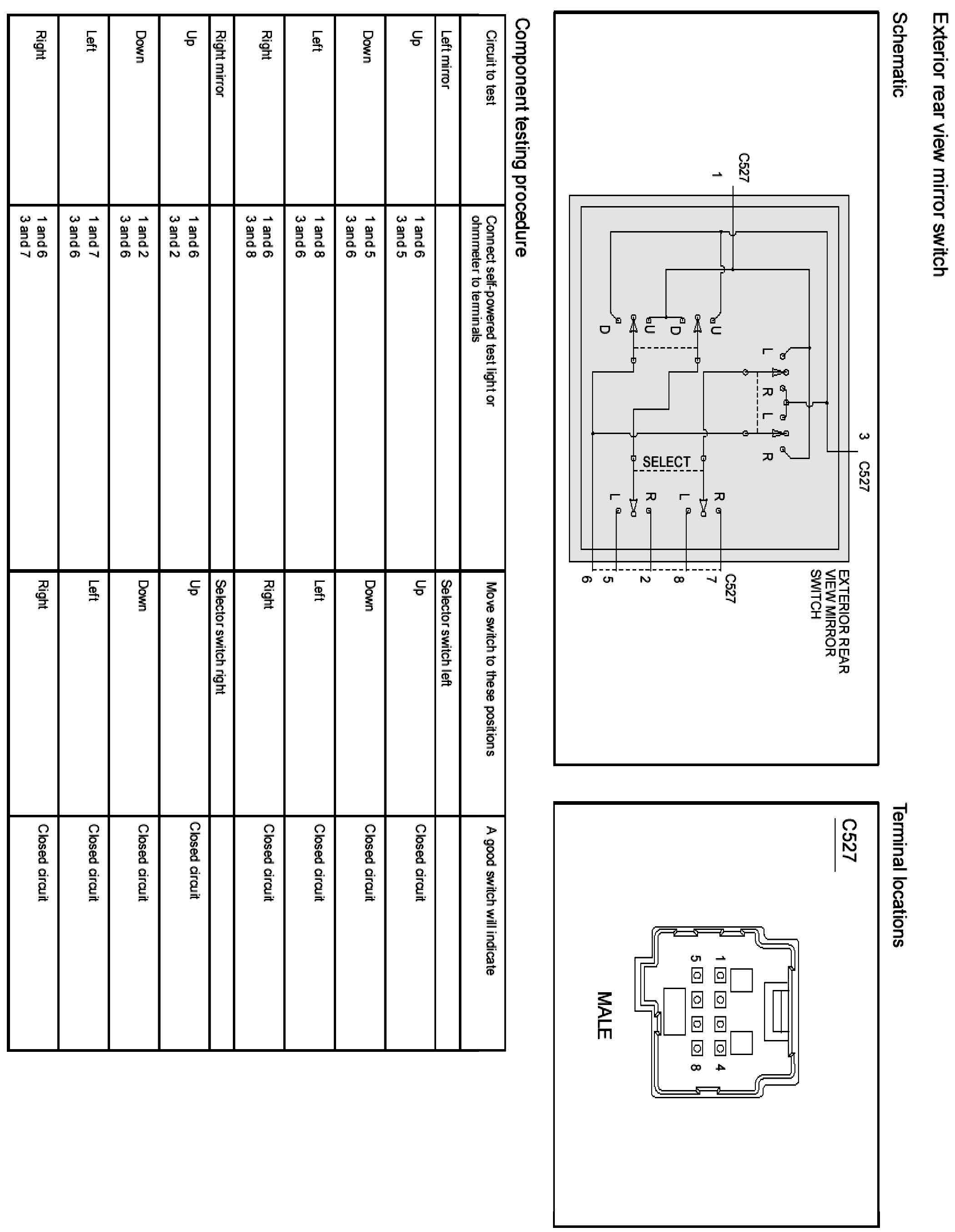Power Mirror Switch: Testing and Inspection