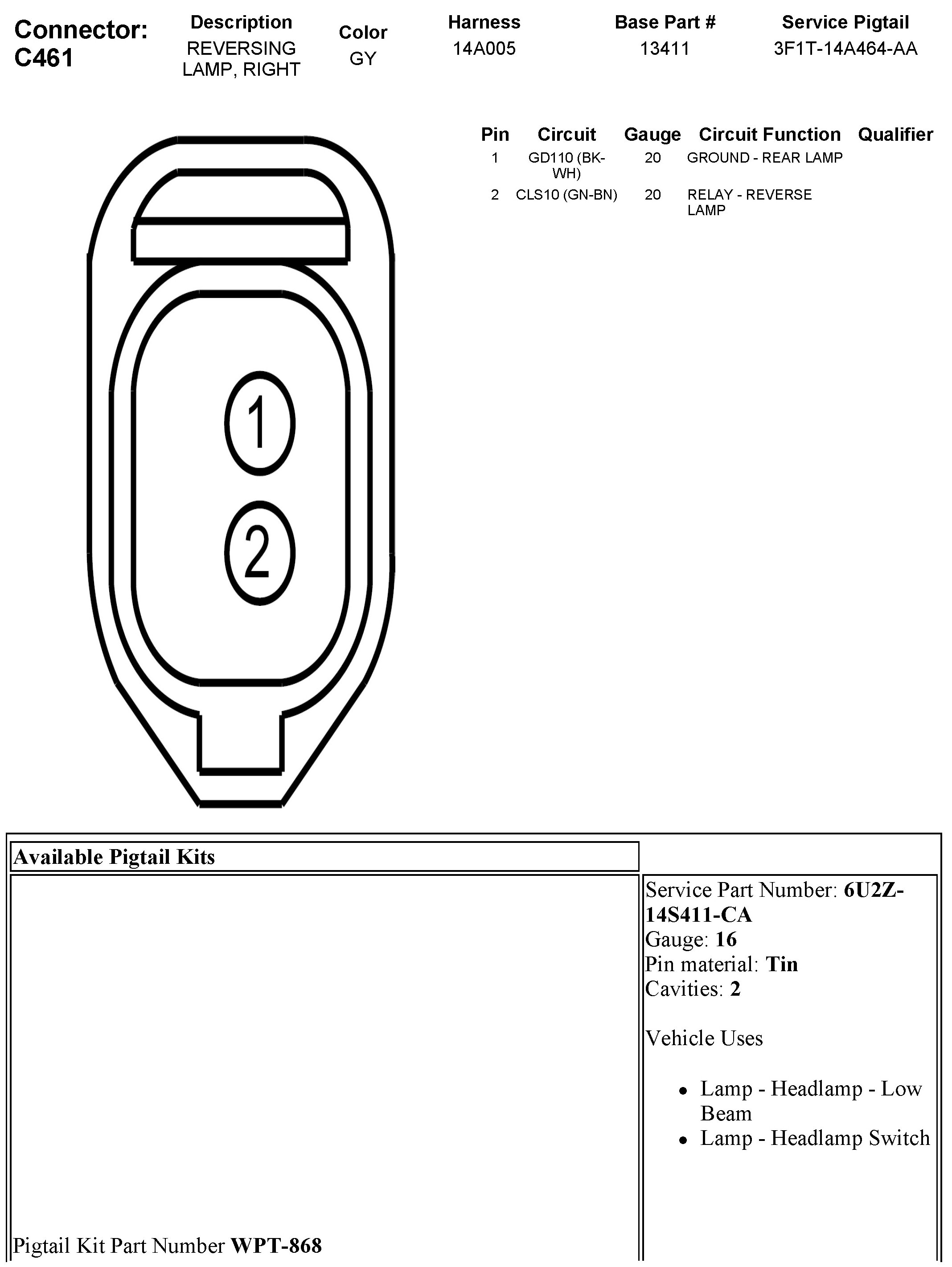 C461 Reversing Lamp, Right