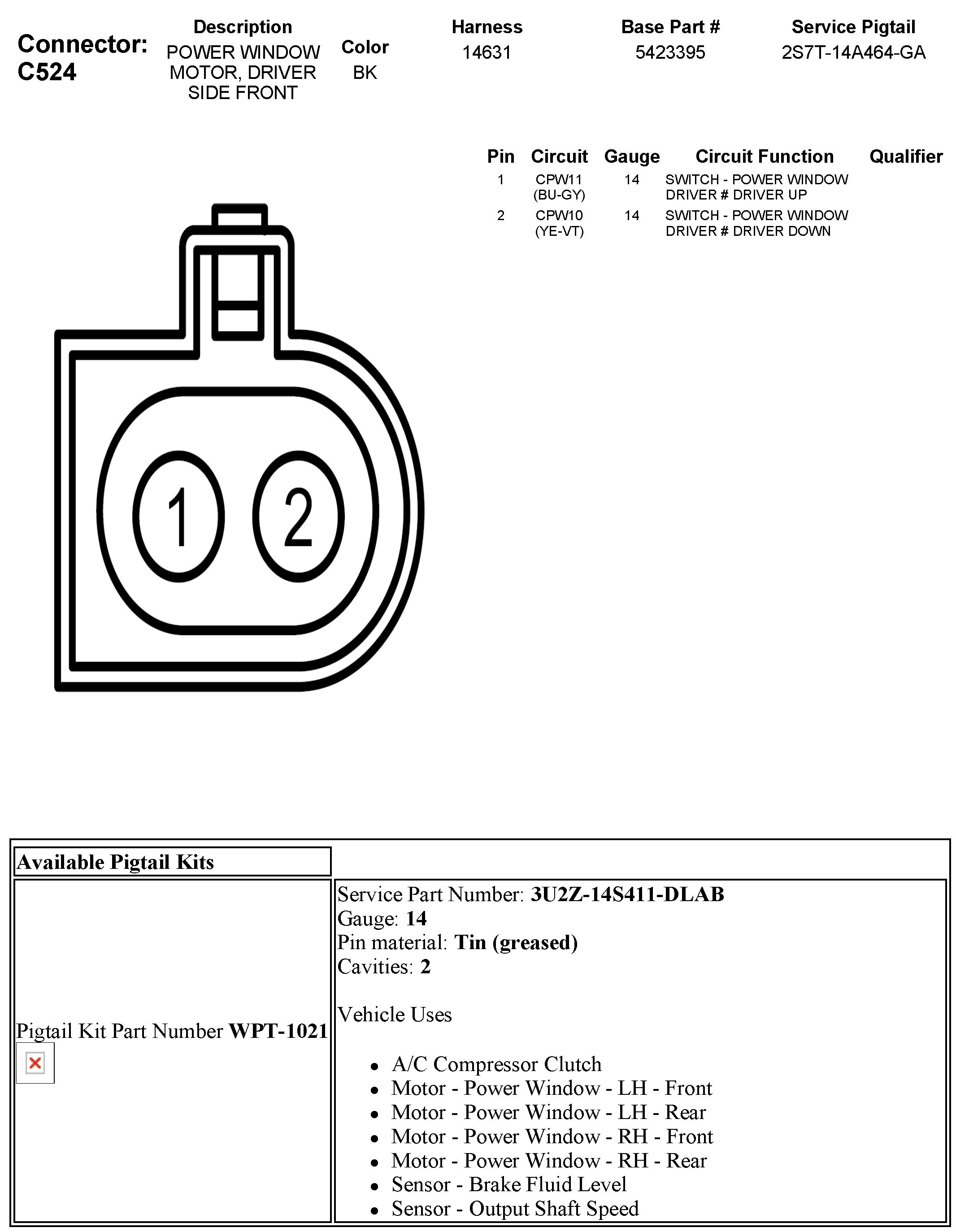 C524 Power Window Motor, Driver Side Front