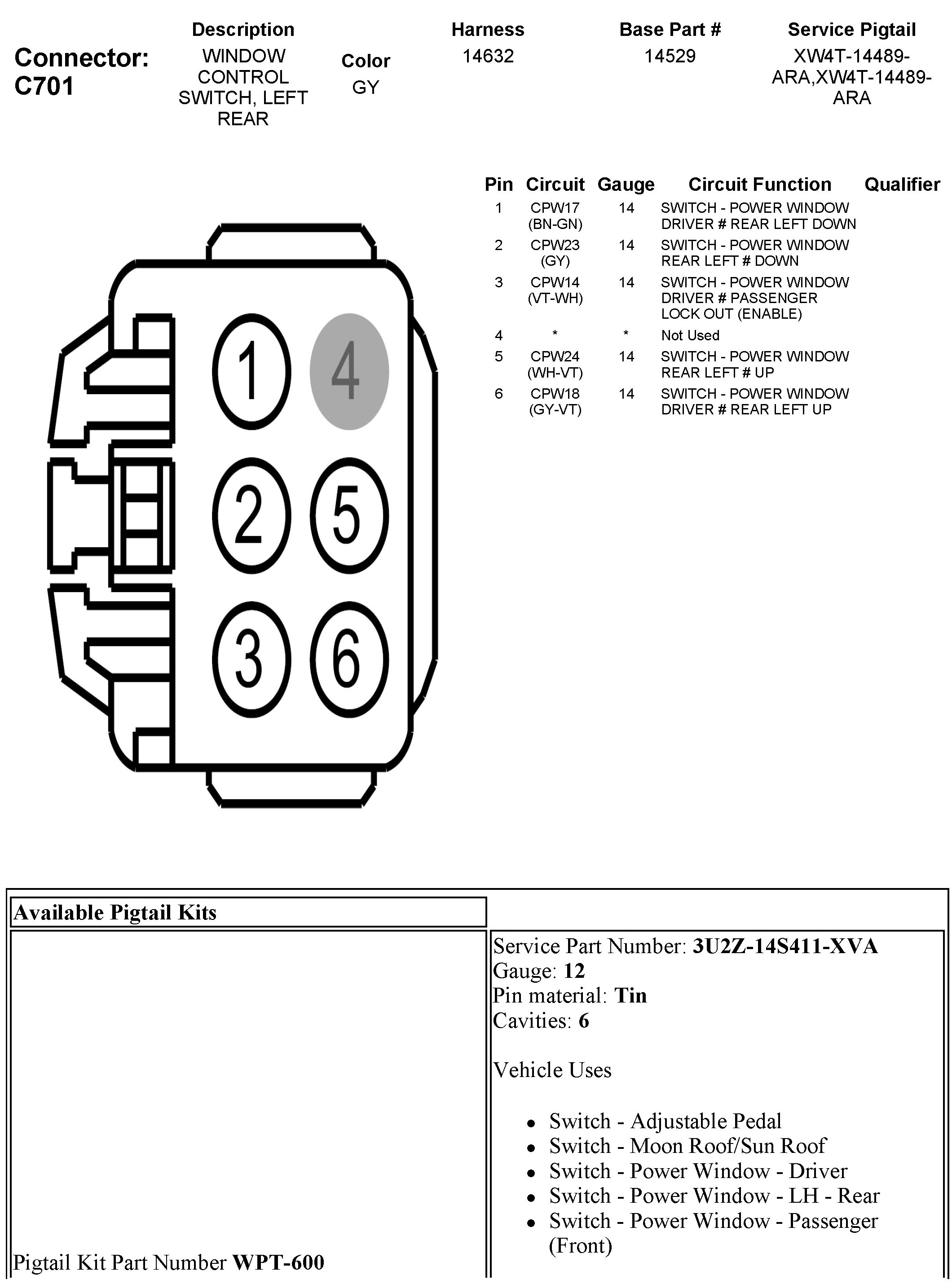 C701 Window Control Switch, Left Rear