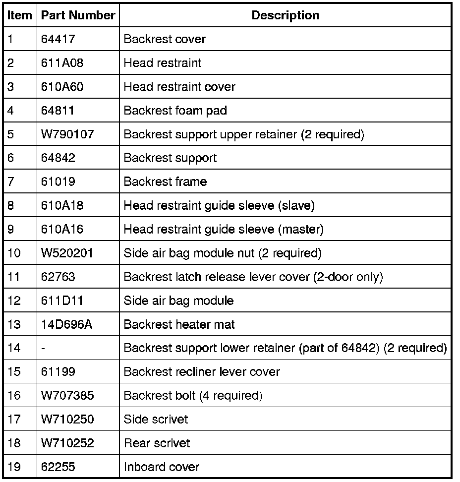 Seat - Exploded View, Front