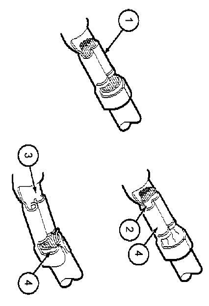 b. Wire insulation does not enter butt splice.