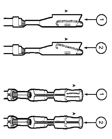 - Use heat shrinkable tubes marked with ES-1 (16-22 GA) or ES-2 (10-18 GA) to seat wire splice.