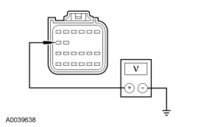 - Measure the voltage between the RCM C310a-12, circuit CBP46 (WH/BU), harness side and ground.
