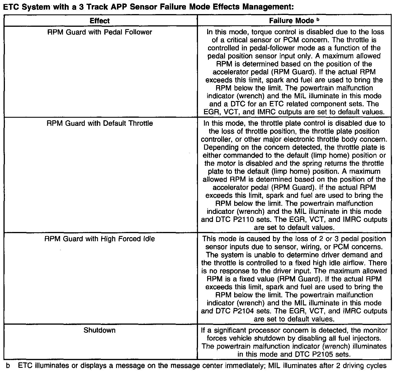 The ETC monitor system is distributed across 2 processors within the PCM: the main powertrain control processor unit (CPU) and a separate monitoring processor. The primary monitoring function is carried out by the independent plausibility checker (IPC) software, which resides on the main processor. It is responsible for determining the driver-demanded torque and comparing it to an estimate of the actual torque delivered. If the generated torque exceeds driver demand by a specified amount, appropriate corrective action is taken.