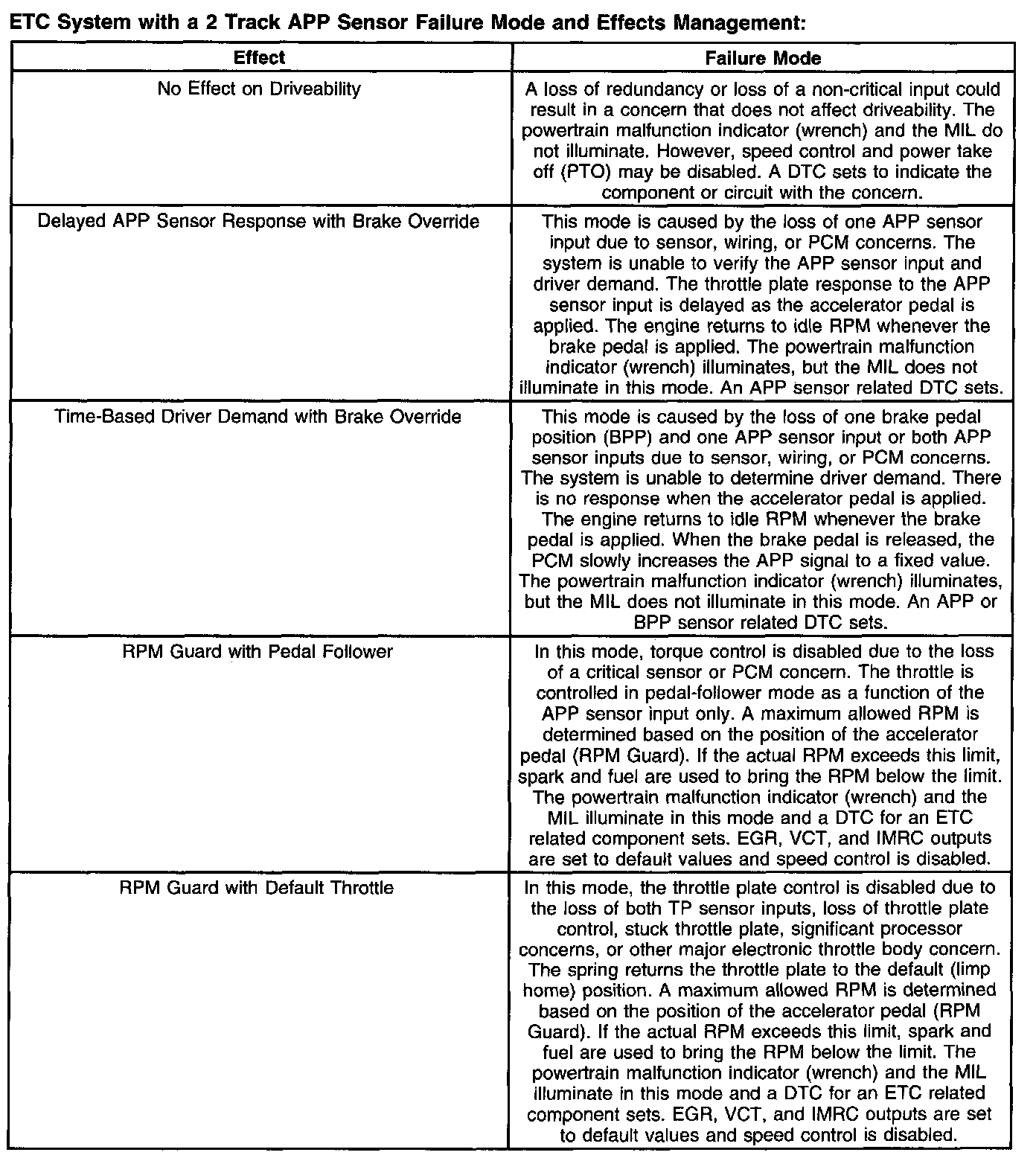 - There is one reference voltage and one signal return circuit between the PCM and the ETB. The reference voltage and the signal return circuits are shared with the reference voltage and signal return circuits used by the accelerator pedal position (APP) sensor. There are also 2 throttle position (TP) signal circuits for redundancy. The redundant TP signals are required for increased monitoring reasons. The first TP signal (TPS1-NS) has a negative slope (increasing angle, decreasing voltage) and the second signal (TPS2-PS) has a positive slope (increasing angle, increasing voltage). The TPS2-PS signal reaches a limit of approximately 4.5 volts at approximately 45 degrees of throttle angle.