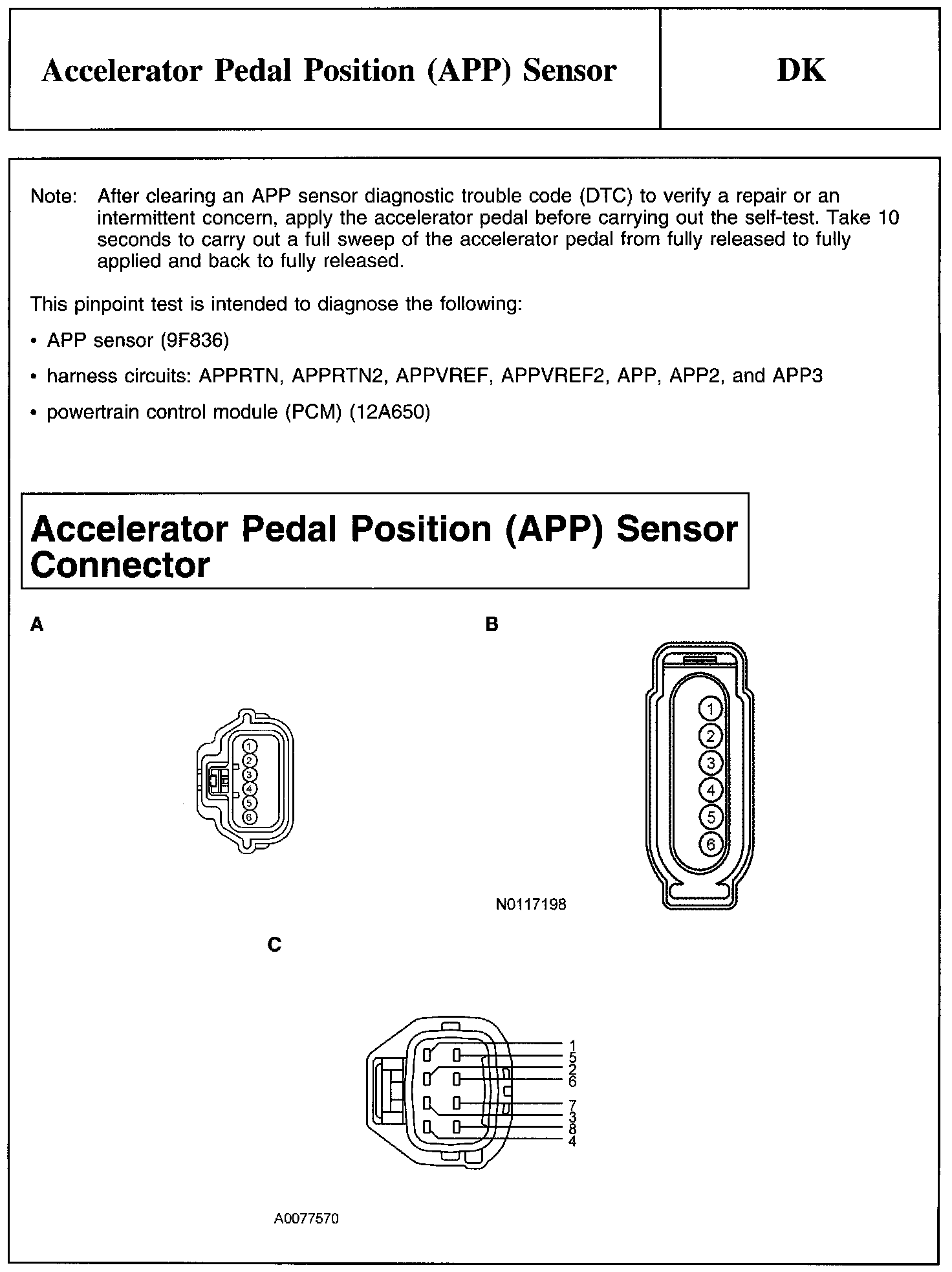 PINPOINT TEST DK: ACCELERATOR PEDAL POSITION (APP) SENSORNote And Accelerator Pedal Position (APP) Sensor Connector: