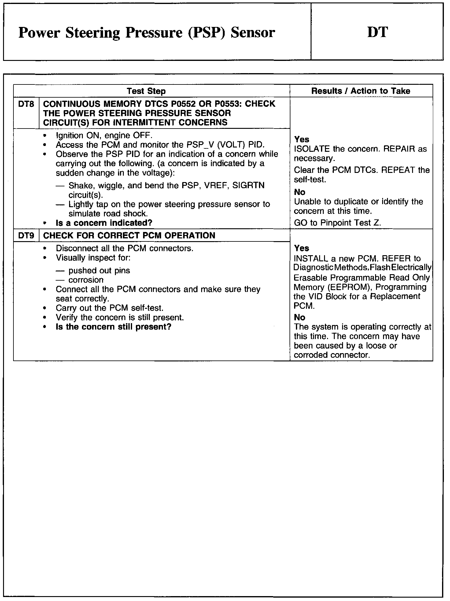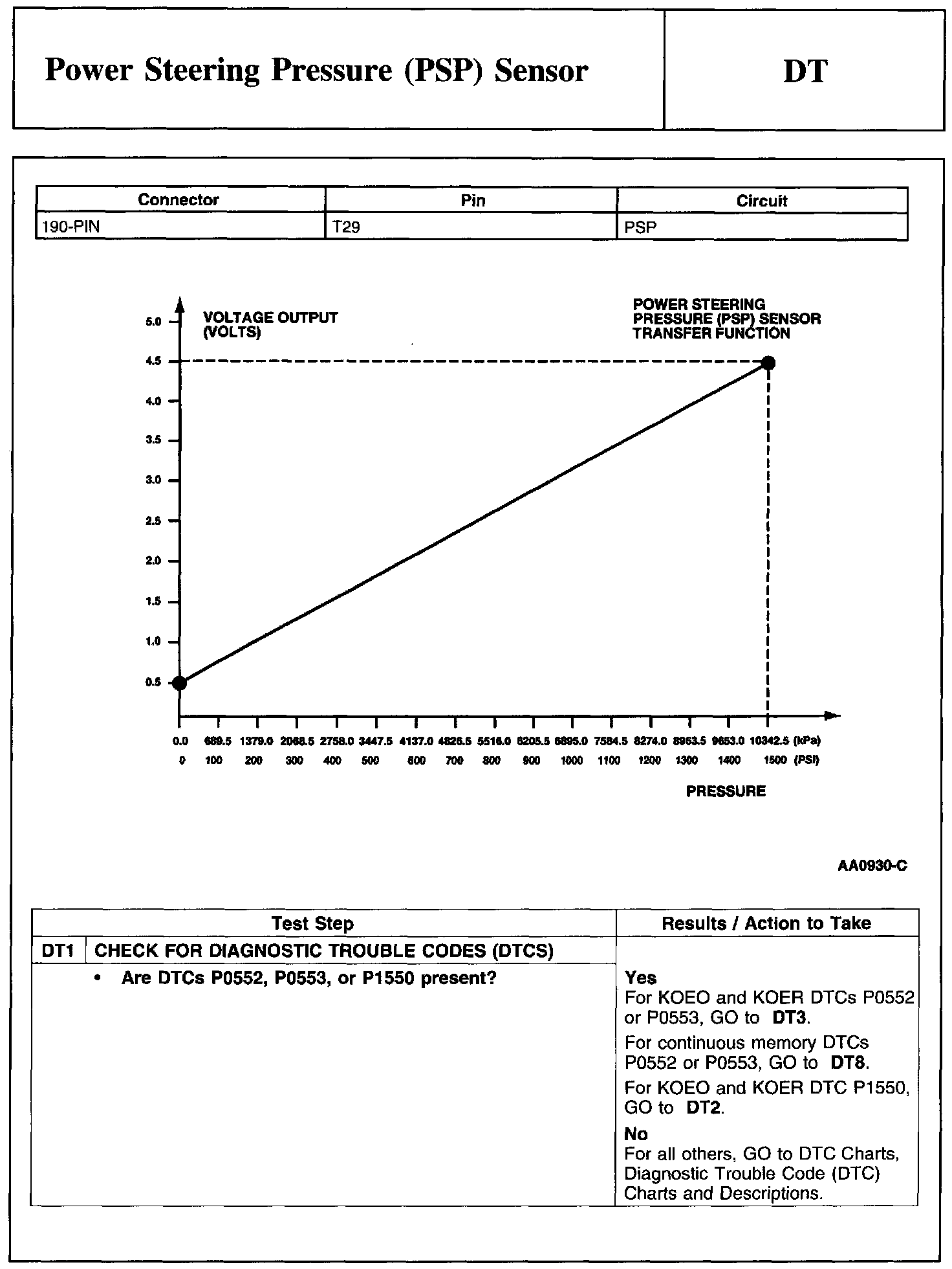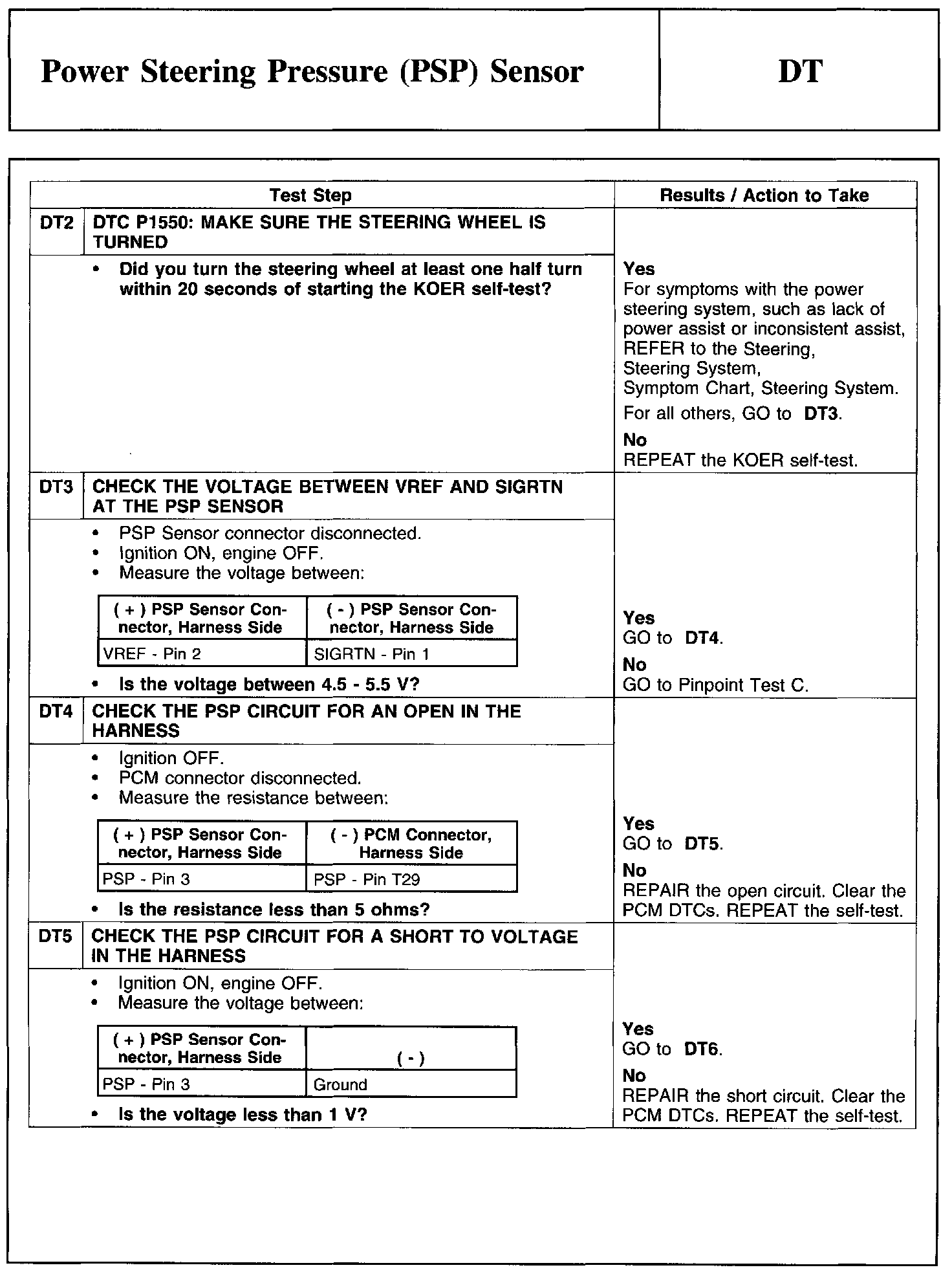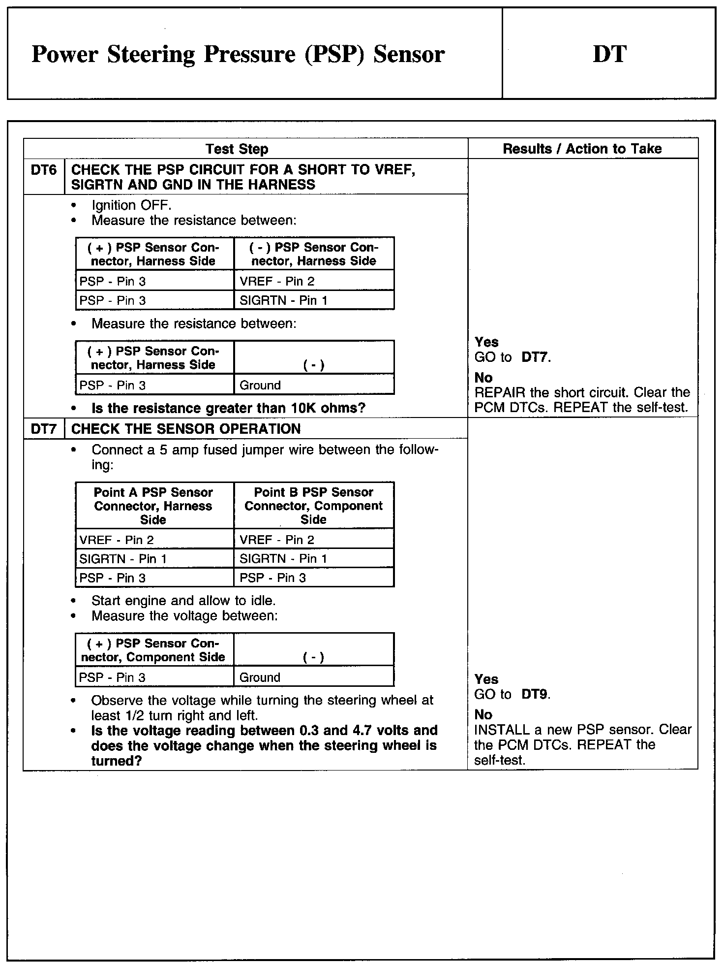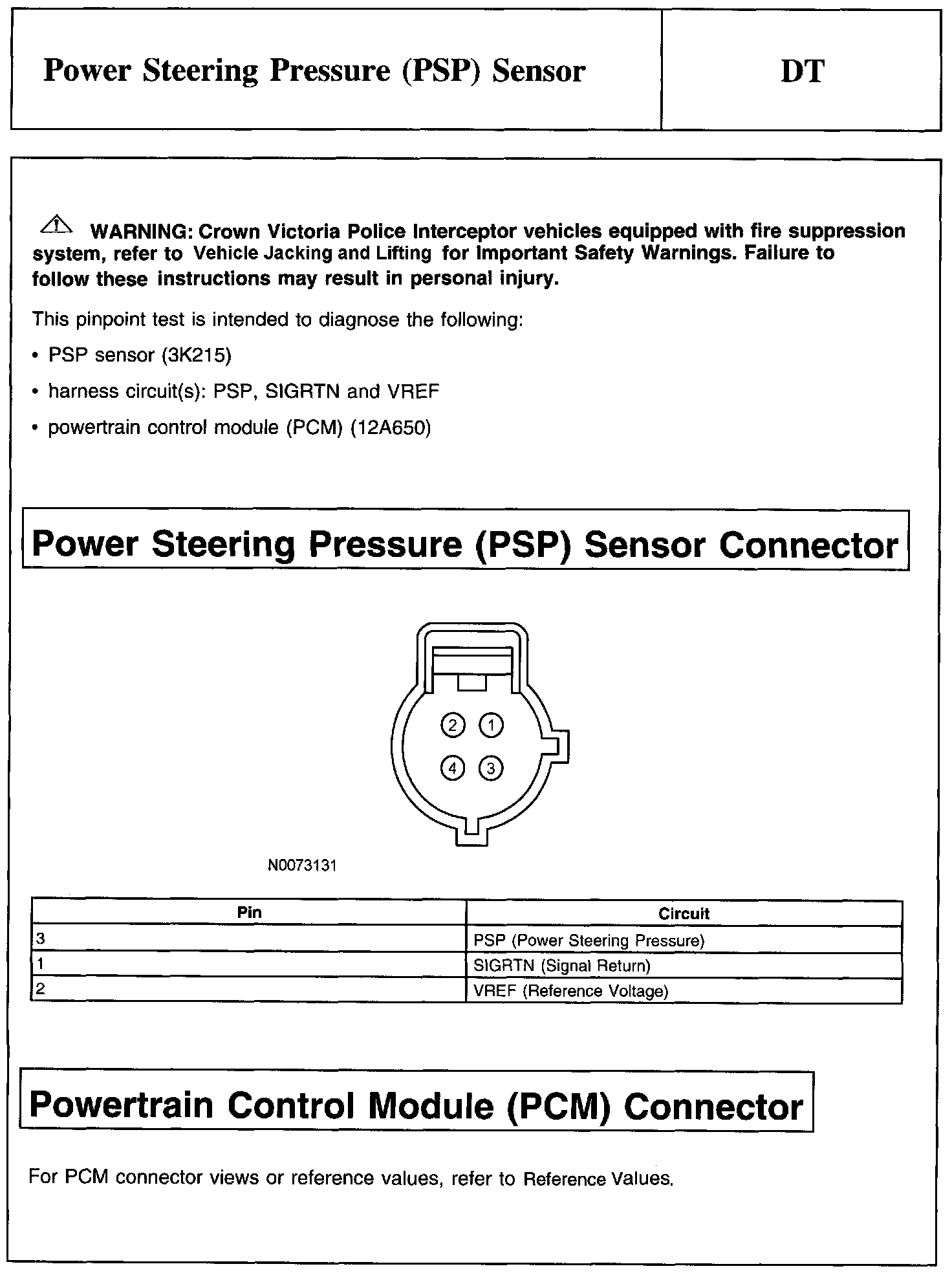 PINPOINT TEST DT: POWER STEERING PRESSURE (PSP) SENSOR
