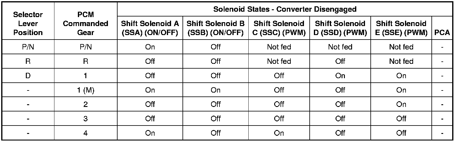 Solenoid Operation Chart - Converter Disengaged
