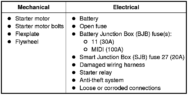 NOTE: The anti-theft system must be functioning correctly before a logical starting system diagnosis can be carried out. Address anti-theft system concerns before continuing. Refer to Anti-Theft - Passive Anti-Theft System (PATS) Testing and Inspection.