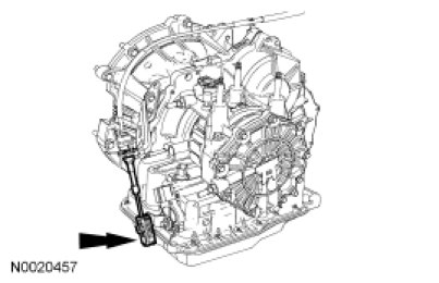 6. NOTE: When installing the selector lever cable, make sure that the selector lever cable locking tabs are locked in place and the selector lever cable end is snapped onto the ball stud. Press the selector lever cable into the selector lever cable bracket and listen for the selector lever cable to click in place. Pull back on the selector lever cable to make sure that it is locked into the selector lever cable bracket. Also make sure that the selector lever cable end is correctly installed onto the ball stud. Pull back on the selector lever cable end to make sure that the selector lever cable end is correctly installed.