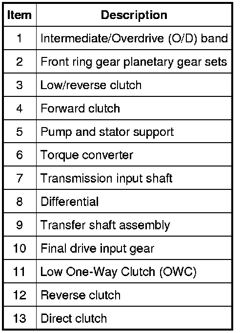 The individual ratios are selected by means of 4 multi-plate clutches, a brake band and a roller One-Way Clutch (OWC).