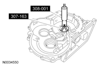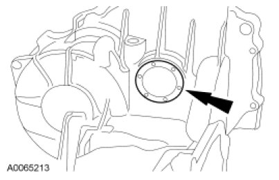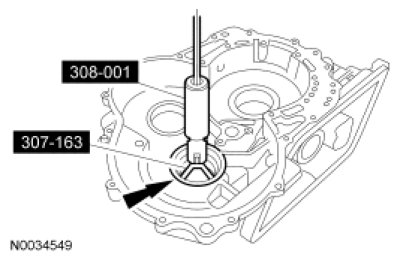 1. NOTE: The converter housing side bearing cups for the transfer shaft bearing and differential case bearing will be installed during the assembly of the transaxle.