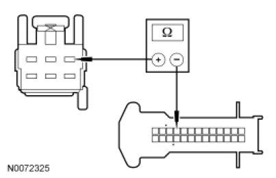 - Measure the resistance between selector lever harness C3245-1, circuit CET53 (BU/OG) and SJB C2280C-23, circuit CET53 (BU/OG).
