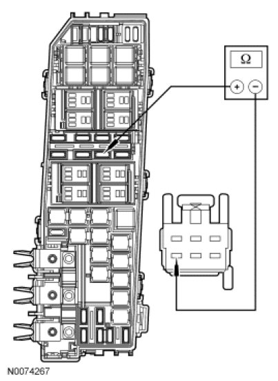 - Measure the resistance between selector lever harness C3245-6, circuit CBB26 (BU/WH) and the output side of BJB fuse 26 (10A).