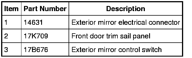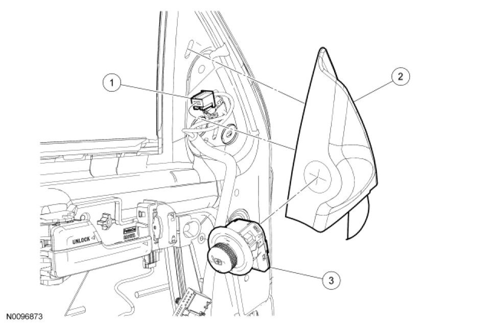 2. Remove the front door trim panel. For additional information, refer to Interior Trim and Ornamentation Service and Repair.