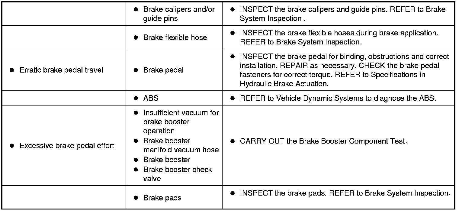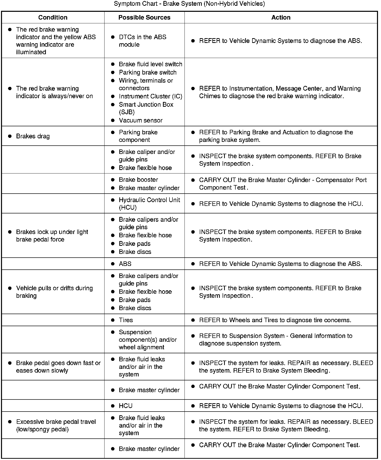 Symptom Chart - Brake System (Non-Hybrid Vehicles)