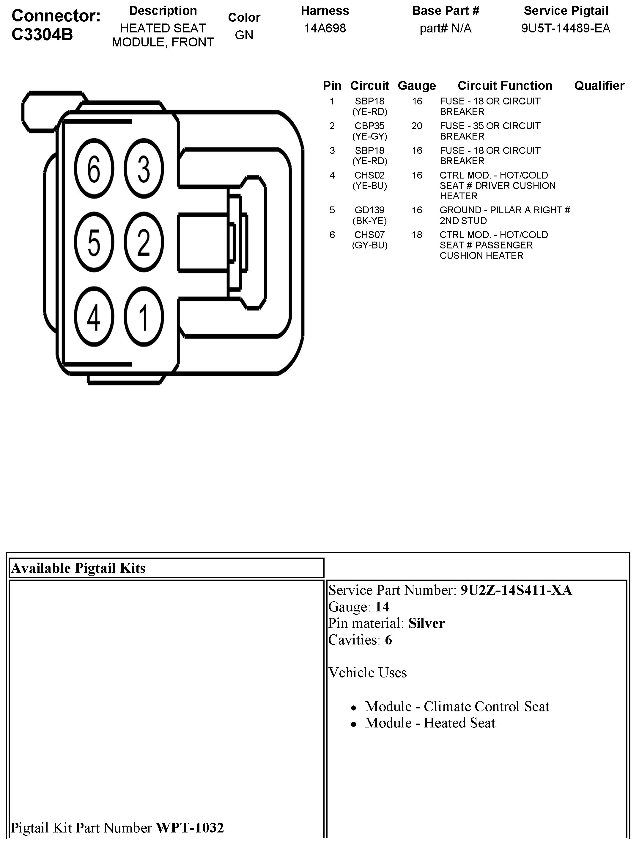C3304B Heated Seat Module, Front