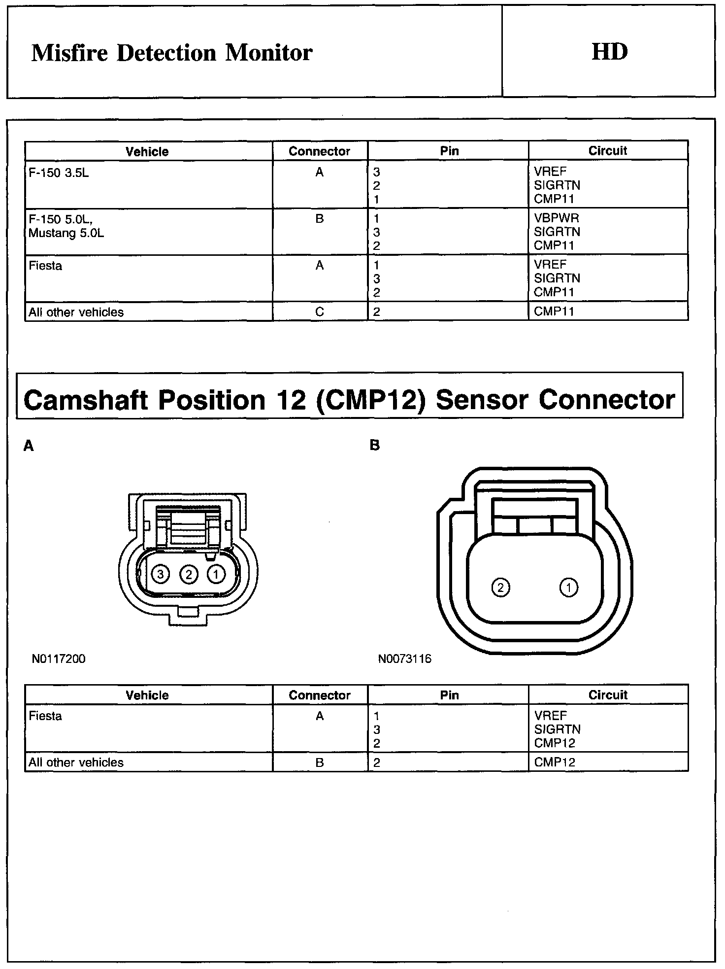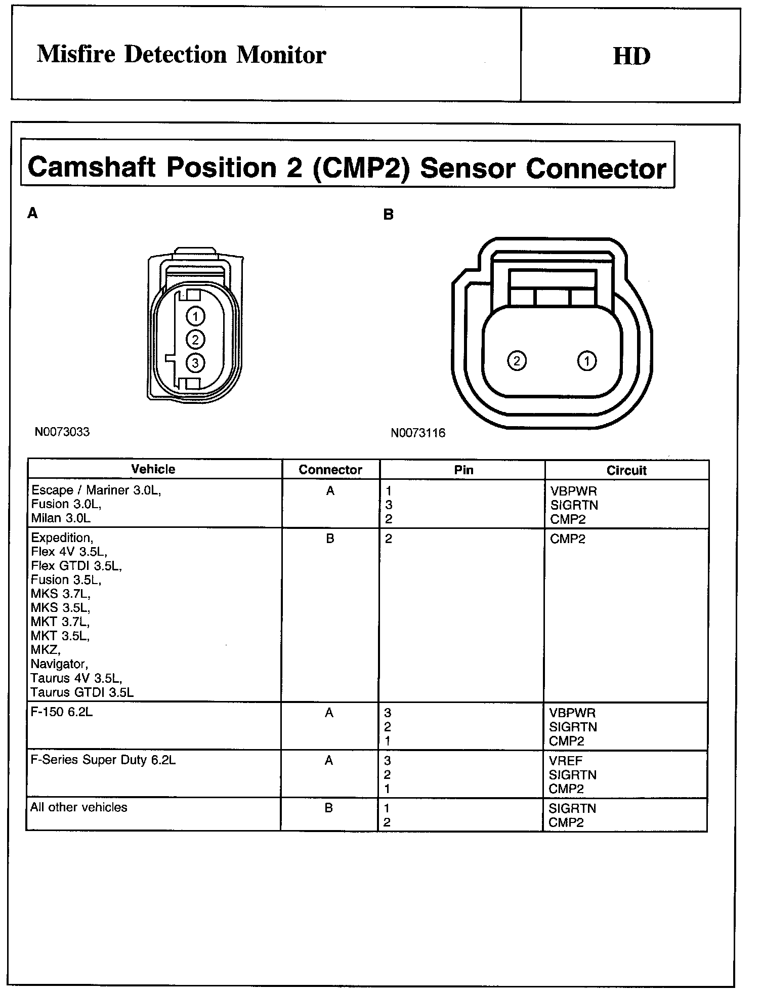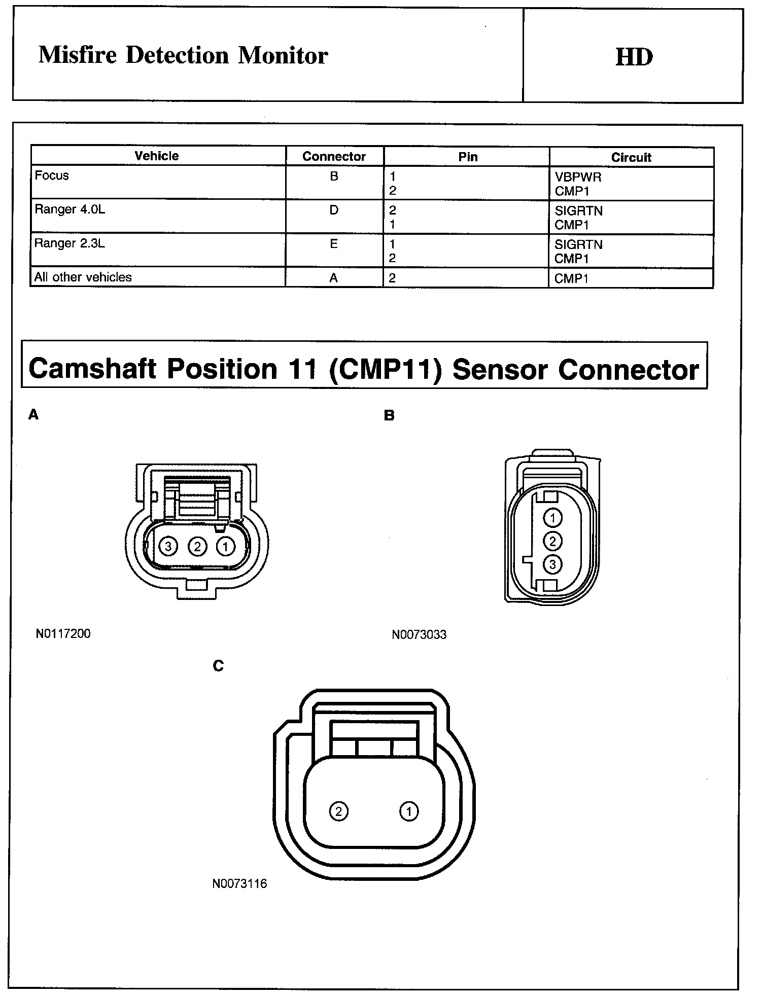 PINPOINT TEST HD: MISFIRE DETECTION MONITORWarning, Note And Camshaft Position 1 (CMP1) Sensor Connector: