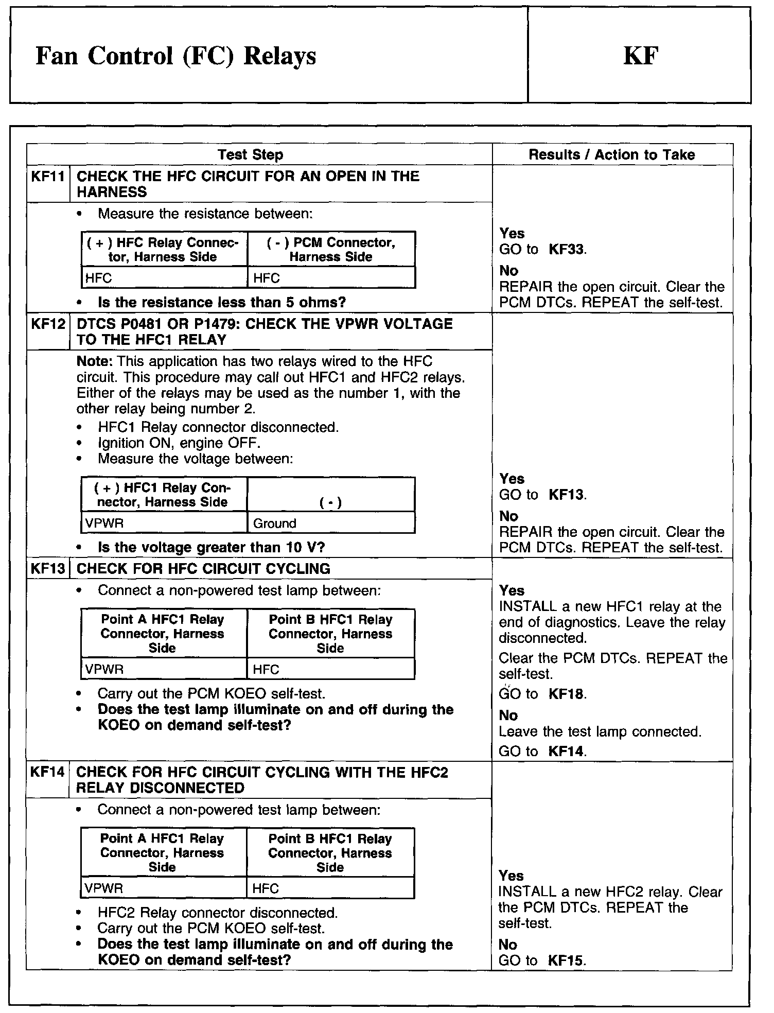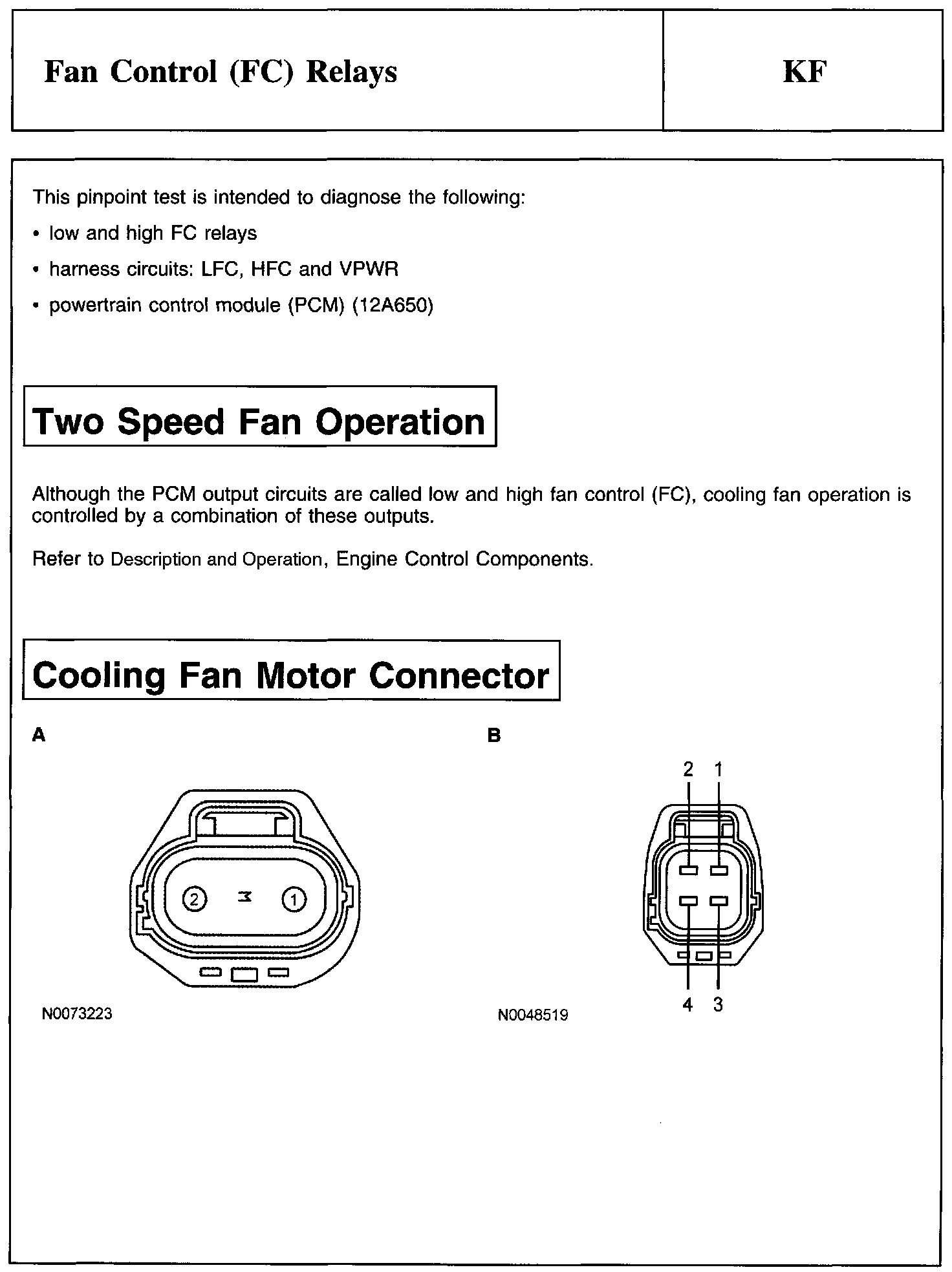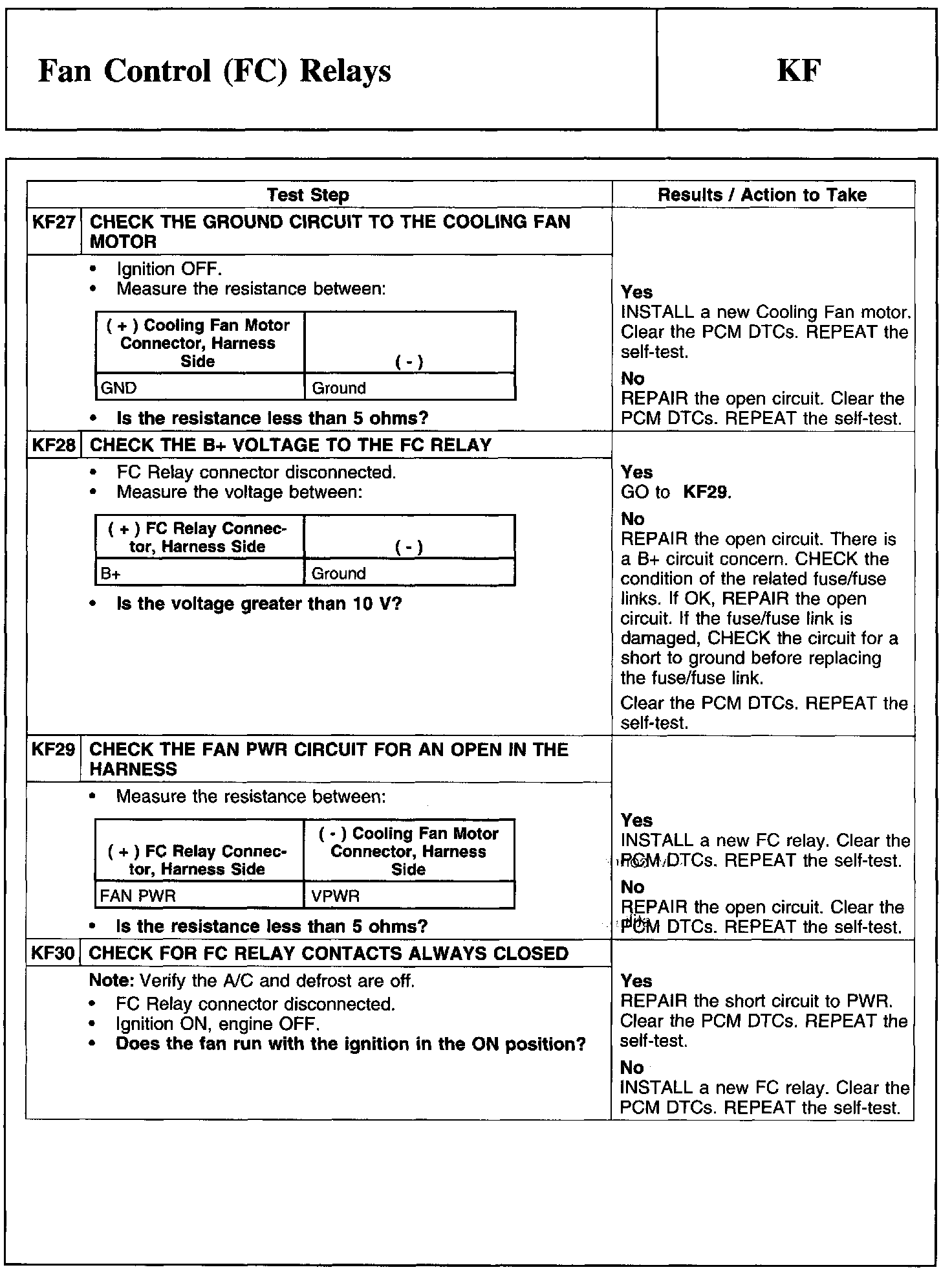 PINPOINT TEST KF: FAN CONTROL (FC) RELAYS