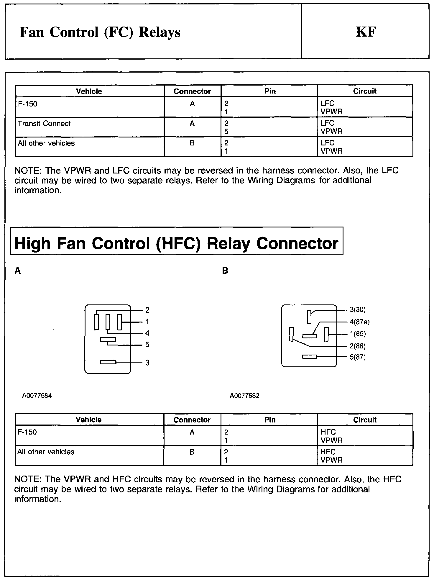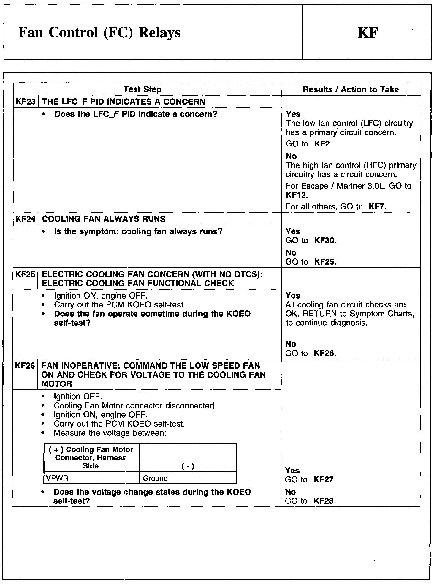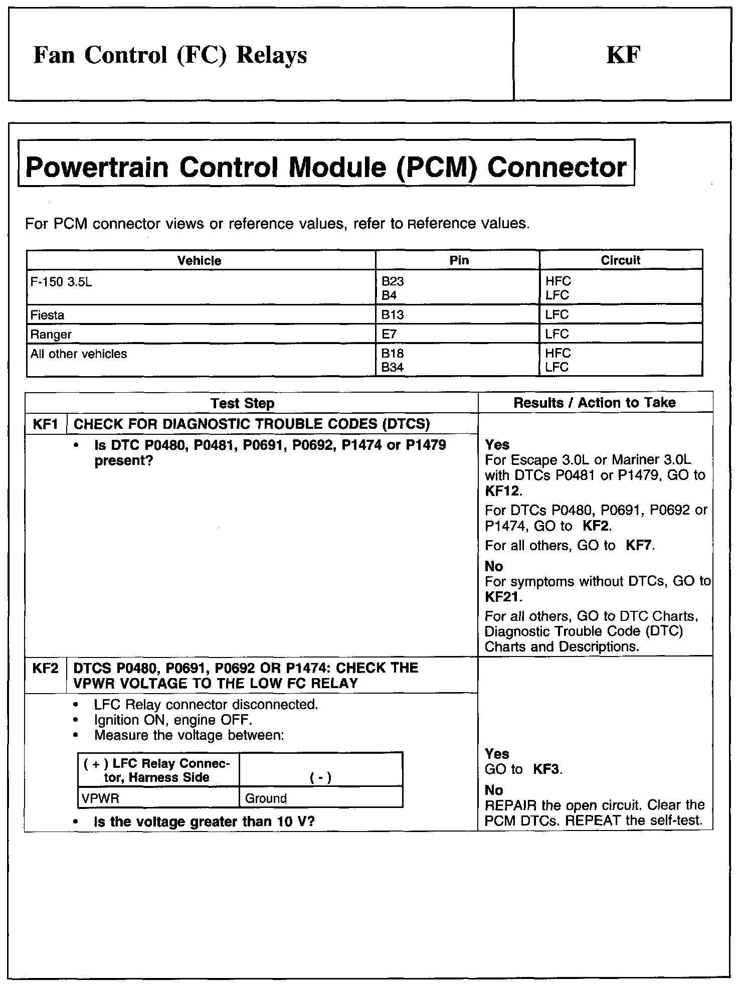 PINPOINT TEST KF: FAN CONTROL (FC) RELAYS