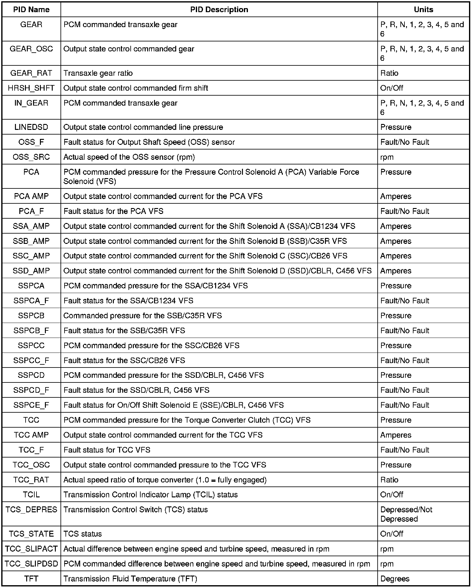 Diagnostic Parameters Identification (PID) Chart