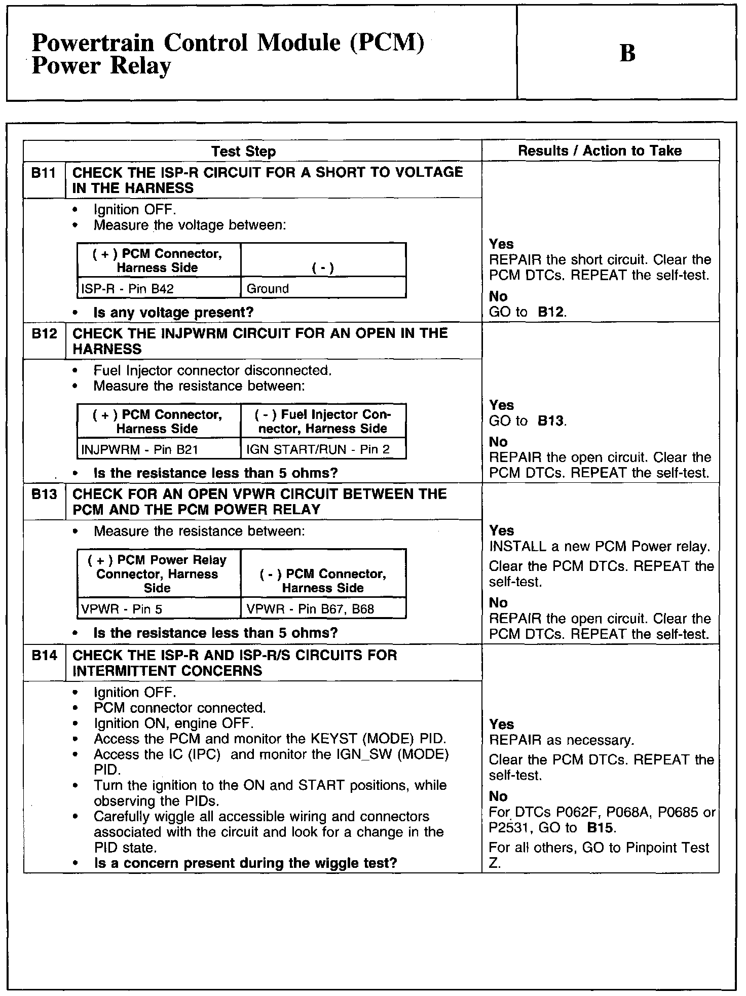 Test B: Powertrain Control Module (PCM) Power Relay