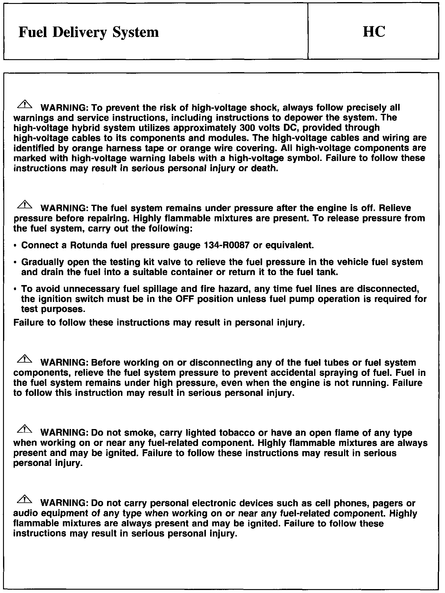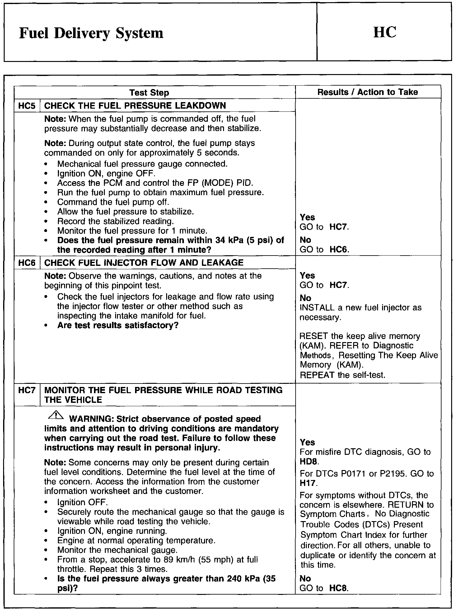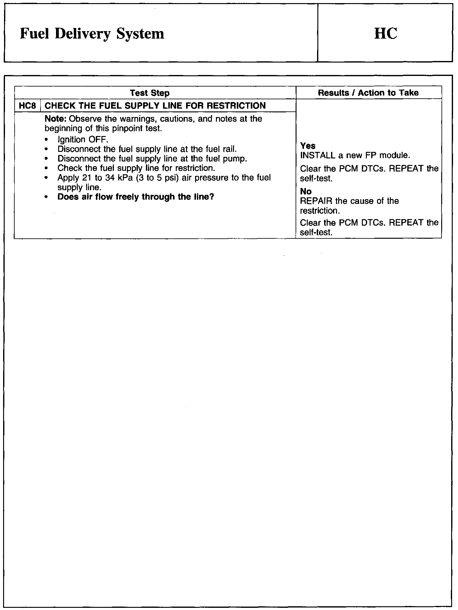 Test HC: Fuel Delivery System