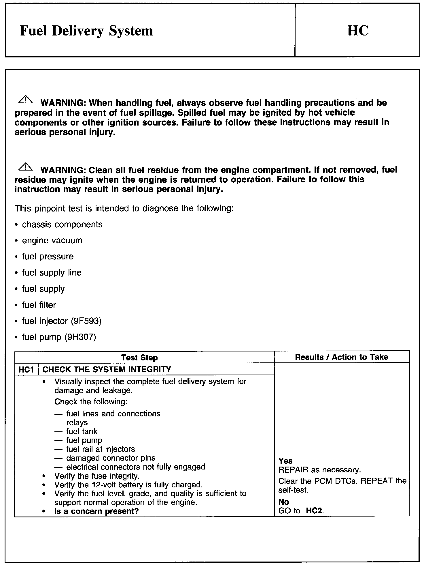 PINPOINT TEST HC: FUEL DELIVERY SYSTEM