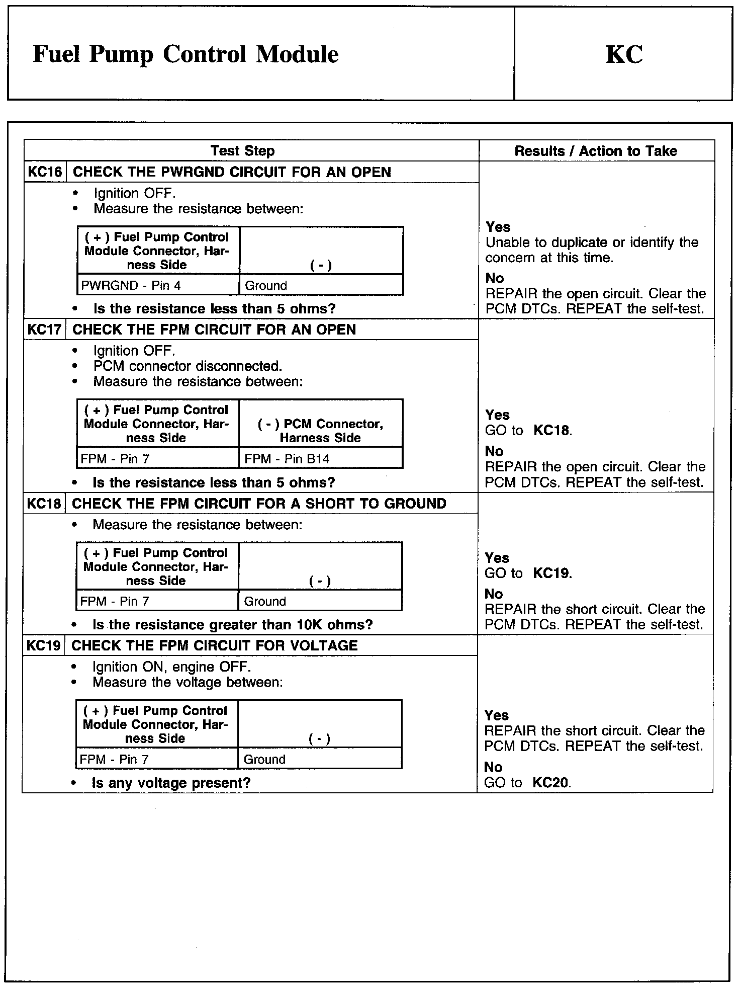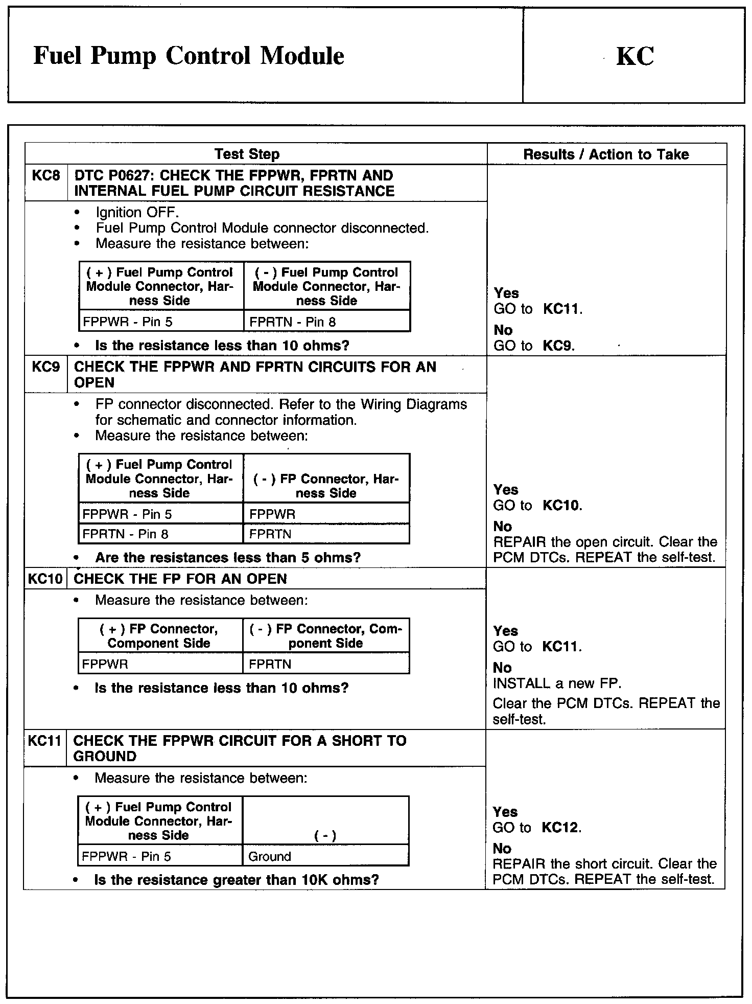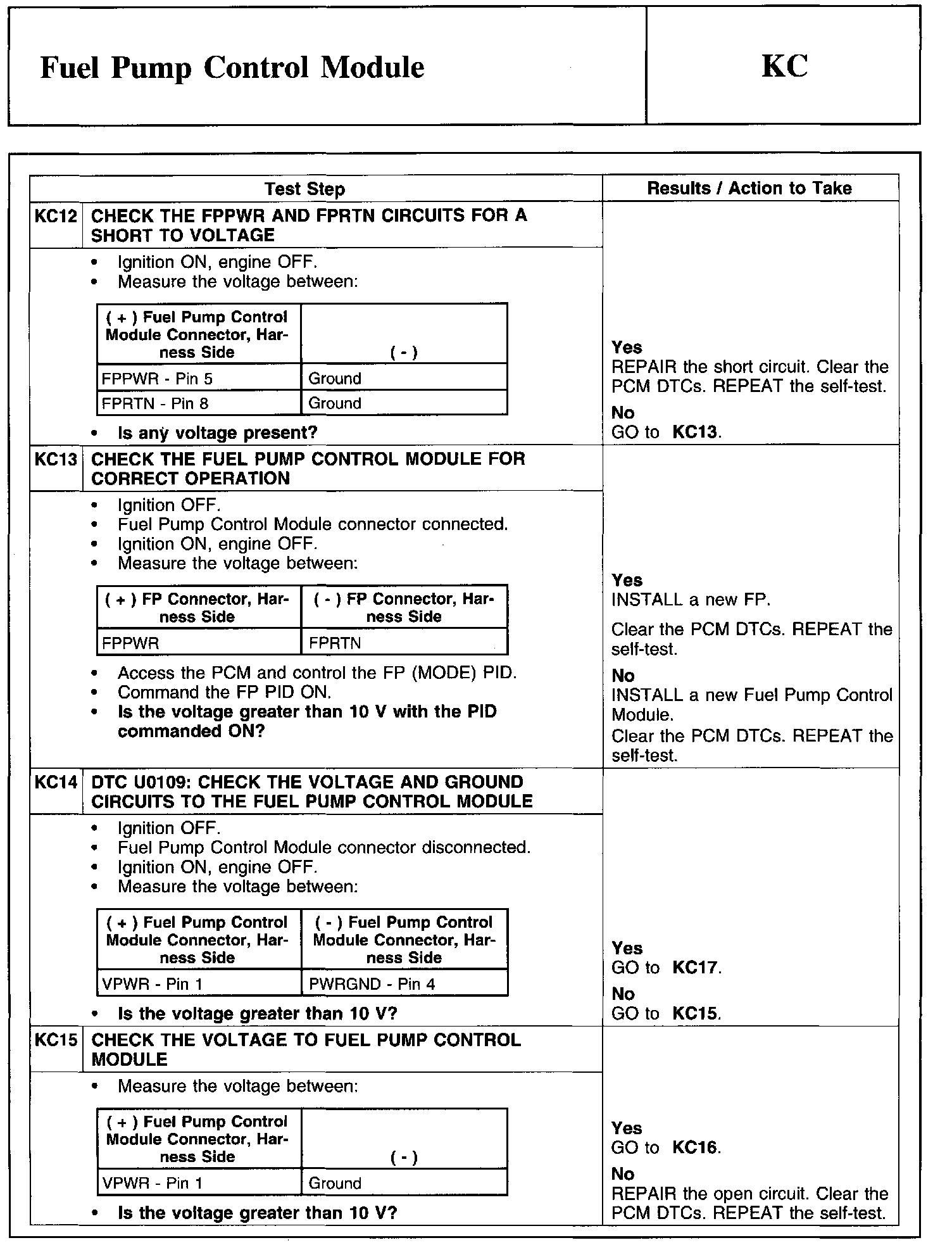 Test KC: Fuel Pump Control Module