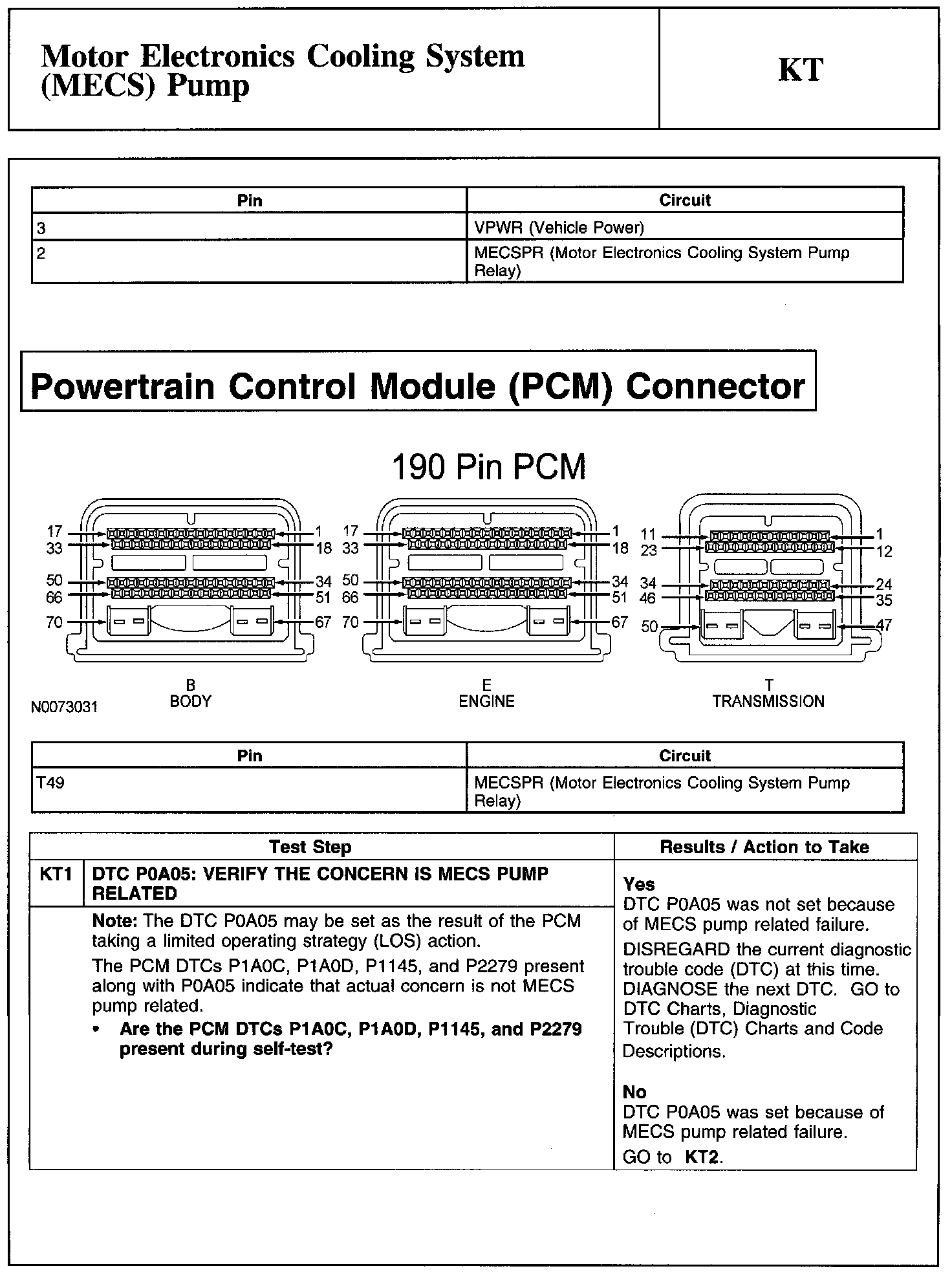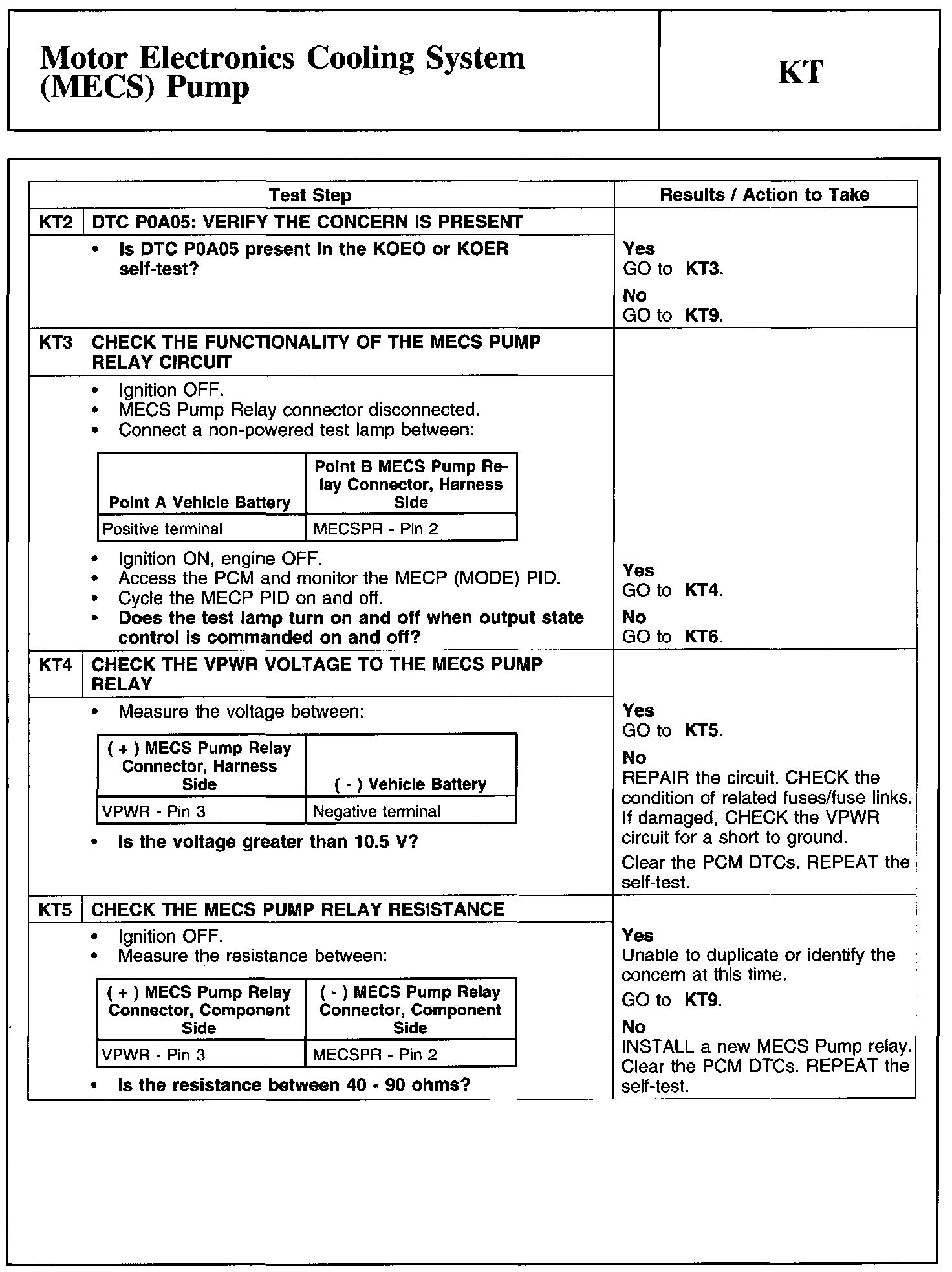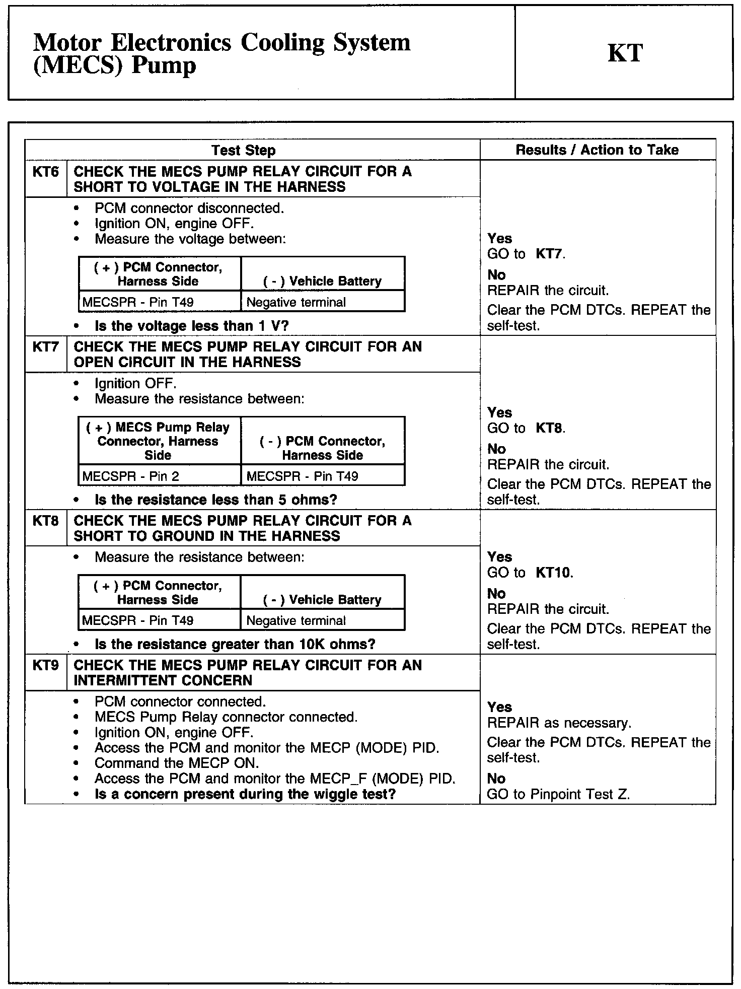 PINPOINT TEST KT: MOTOR ELECTRONICS COOLING SYSTEM (MECS) PUMP