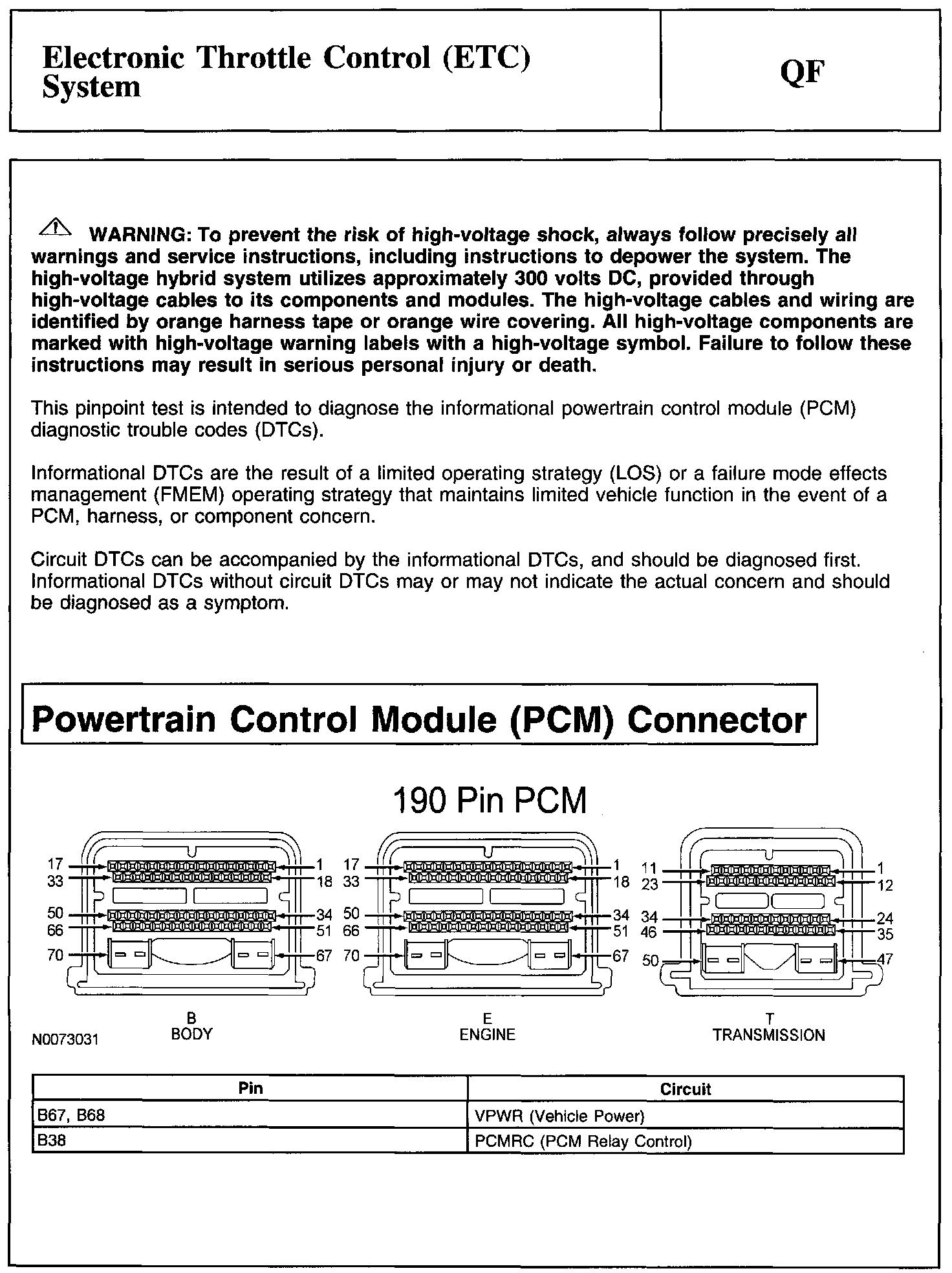 PINPOINT TEST QF: ELECTRONIC THROTTLE CONTROL (ETC) SYSTEM