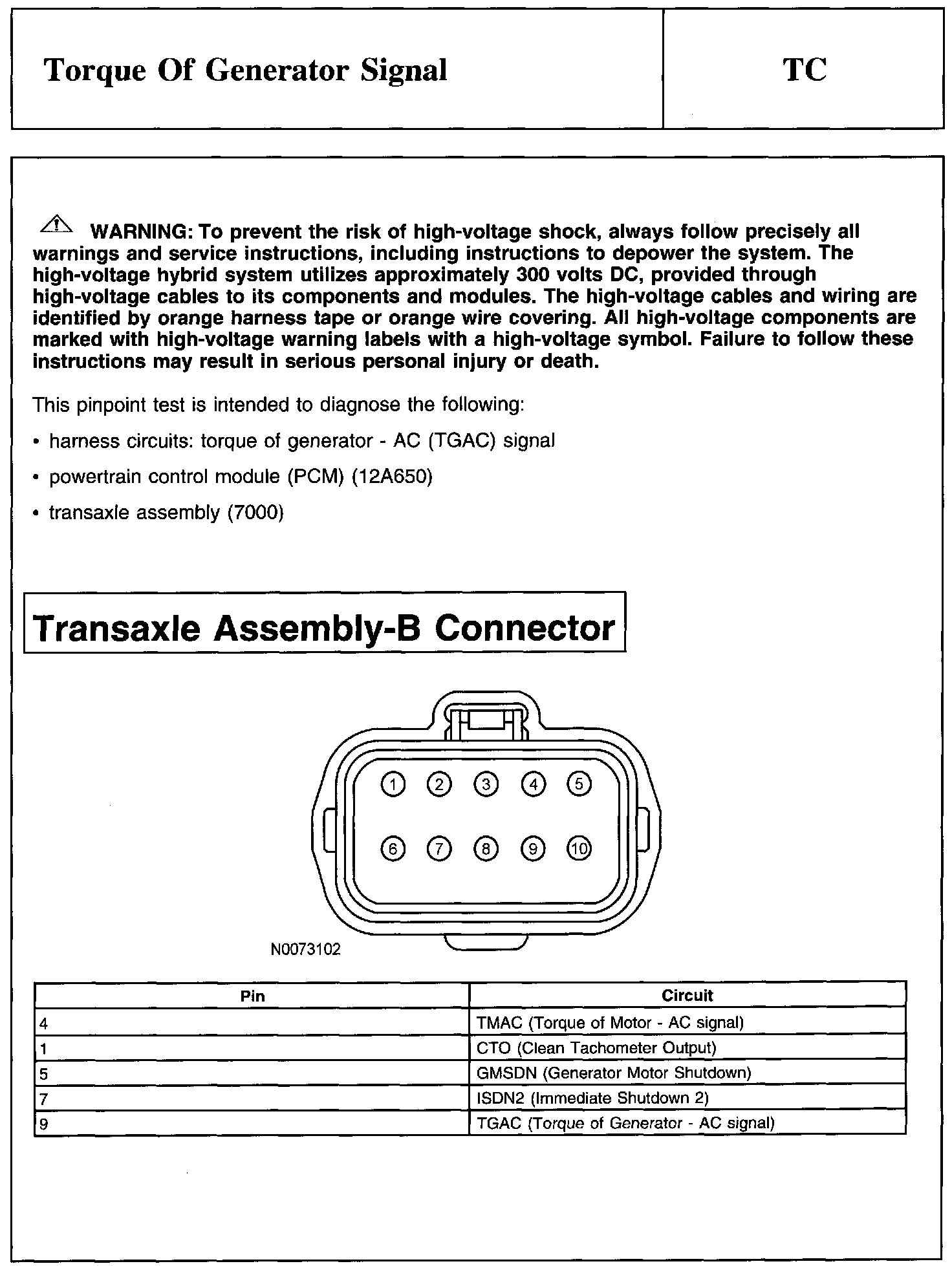 PINPOINT TEST TC: TORQUE OF GENERATOR SIGNAL